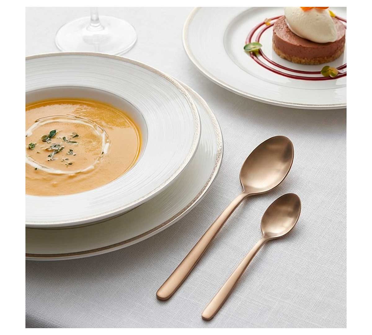 Violet Satin Champagne aporta distinción sin excesos, integrándose fácilmente en conceptos gastronómicos modernos donde el diseño acompaña al plato sin eclipsarlo.