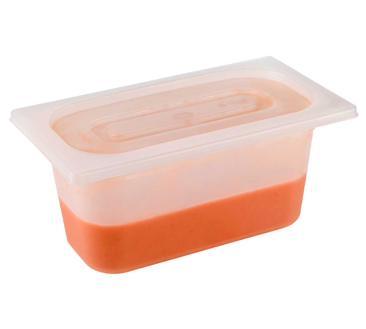 Bandeja Gastronorm 1/4 de copoliester sin Bisfenol-A. Un material alternativo al policarbonato. Es transparente y resistente a los impactos. Está disponible en modelos con diferente altura, desde 6,5 hasta 15 cm. Ideal para almacenaje, es apilable.