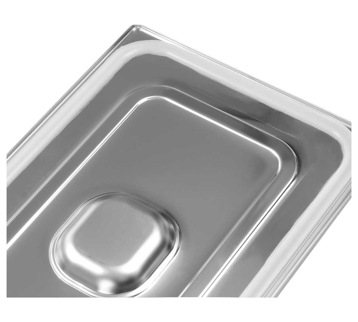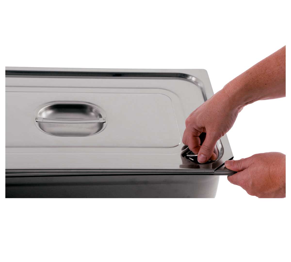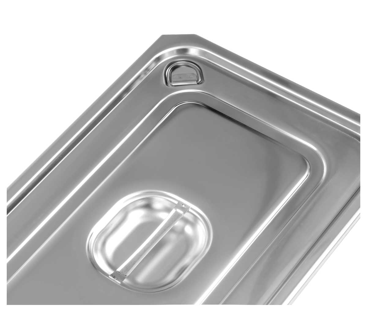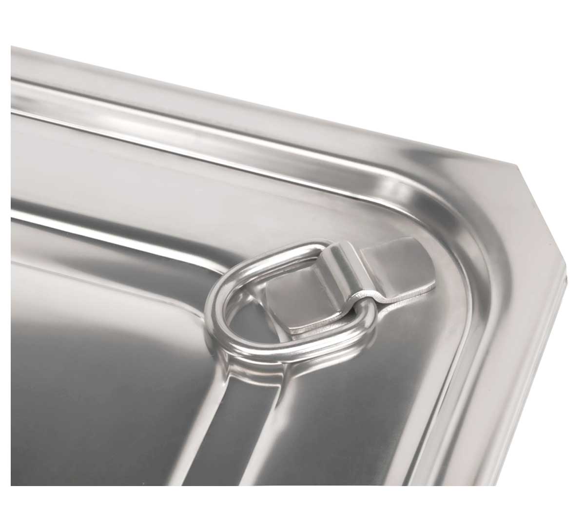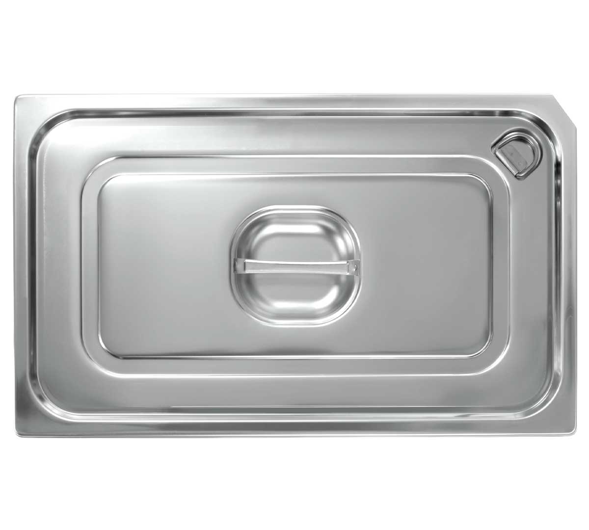 Tapa GN 1/1 hermética profesional en acero inoxidable 18/10 con sistema Easy Open y junta de silicona, diseñada para conservación segura y apertura fácil en cocina profesional intensiva.
