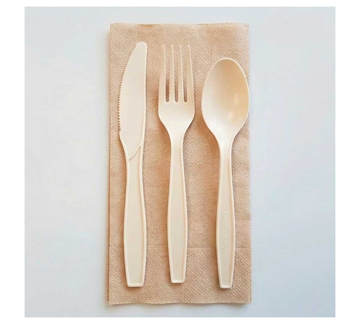 El Set de Cubiertos de Maíz PLA de Packaway es ecológico y degradable.