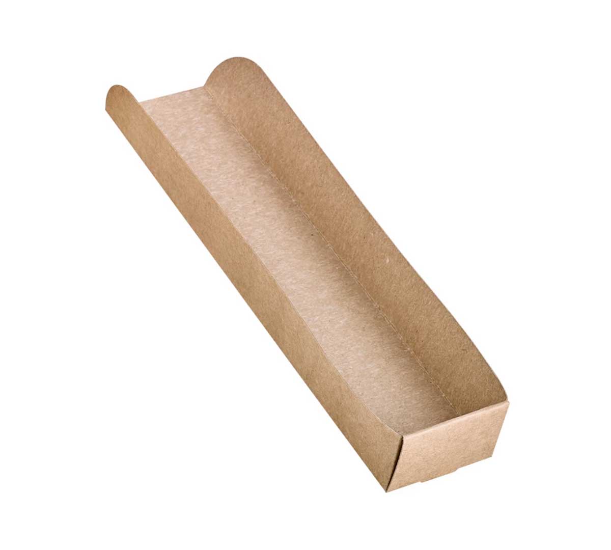 Bandejas de cartón kraft resistentes, ideales para servir perritos calientes para llevar. Ofrece una presentación higiénica y práctica. Pack de 1000 unidades.