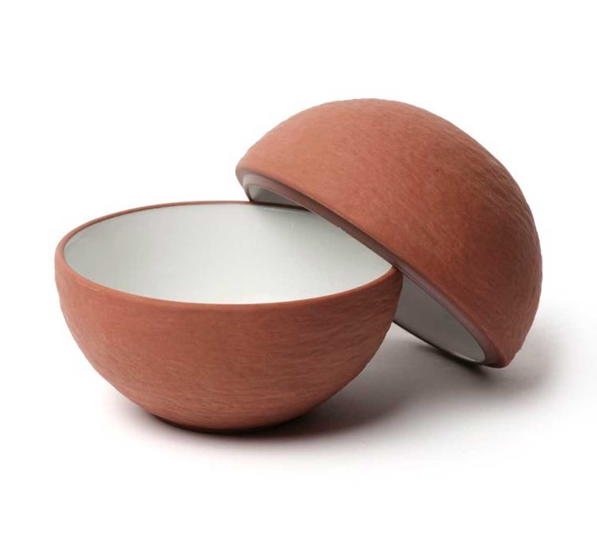 El plato de diseño esférico en porcelana de color terracota es una pieza de vajilla gastronómica de inspiración mineral diseñada para emplatados creativos. Su tono terracota aporta calidez, naturalidad y profundidad visual, ideal para cocina de autor y presentaciones contemporáneas.