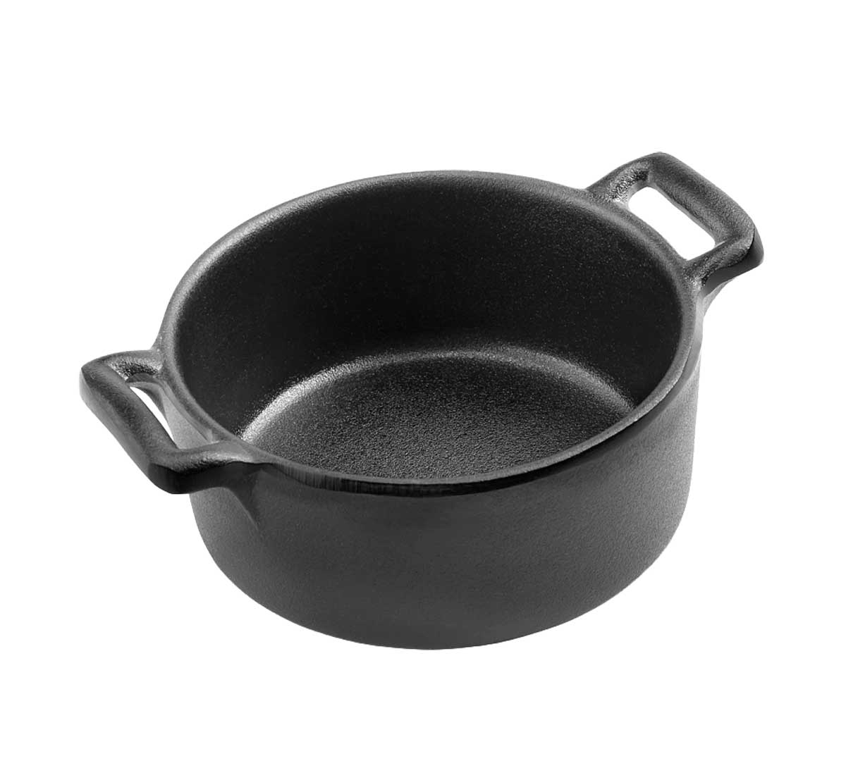 Mini cacerola negra fabricado en melamina. Material es resistente al calor y a la corrosión. No es tóxico. Es inodoro, ligero e indeformable. Esta cacerola no está recomendado para utilizarse en el horno, microondas o directamente al fuego.
