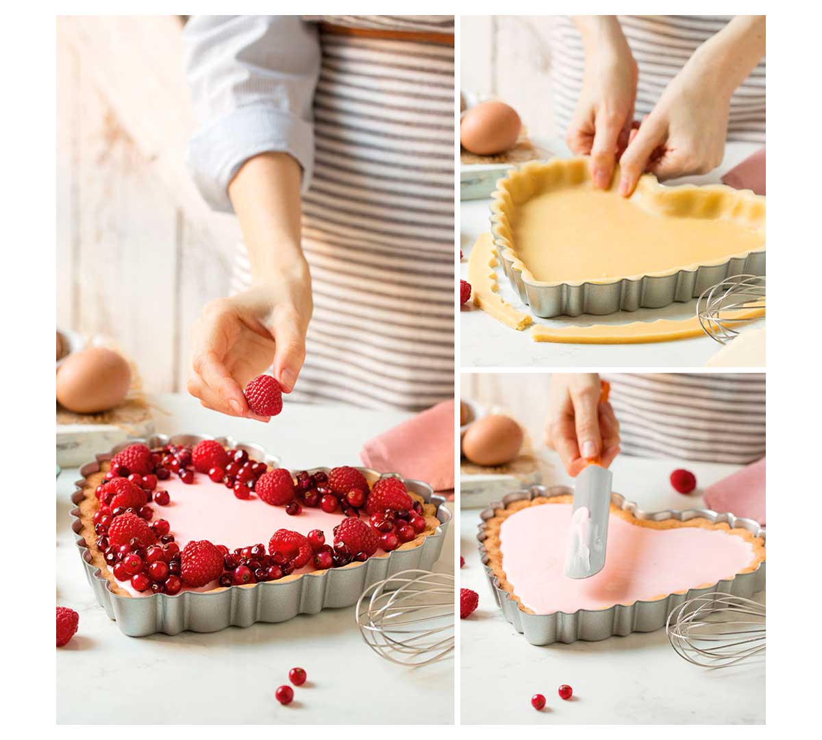 El Molde Tarta Corazón Decora pertenece a la gama Design Tart y ofrece un diseño patentado con fondo removible y formato corazón, pensado para elaboraciones creativas y presentaciones diferenciadas en vitrinas y servicio profesional.