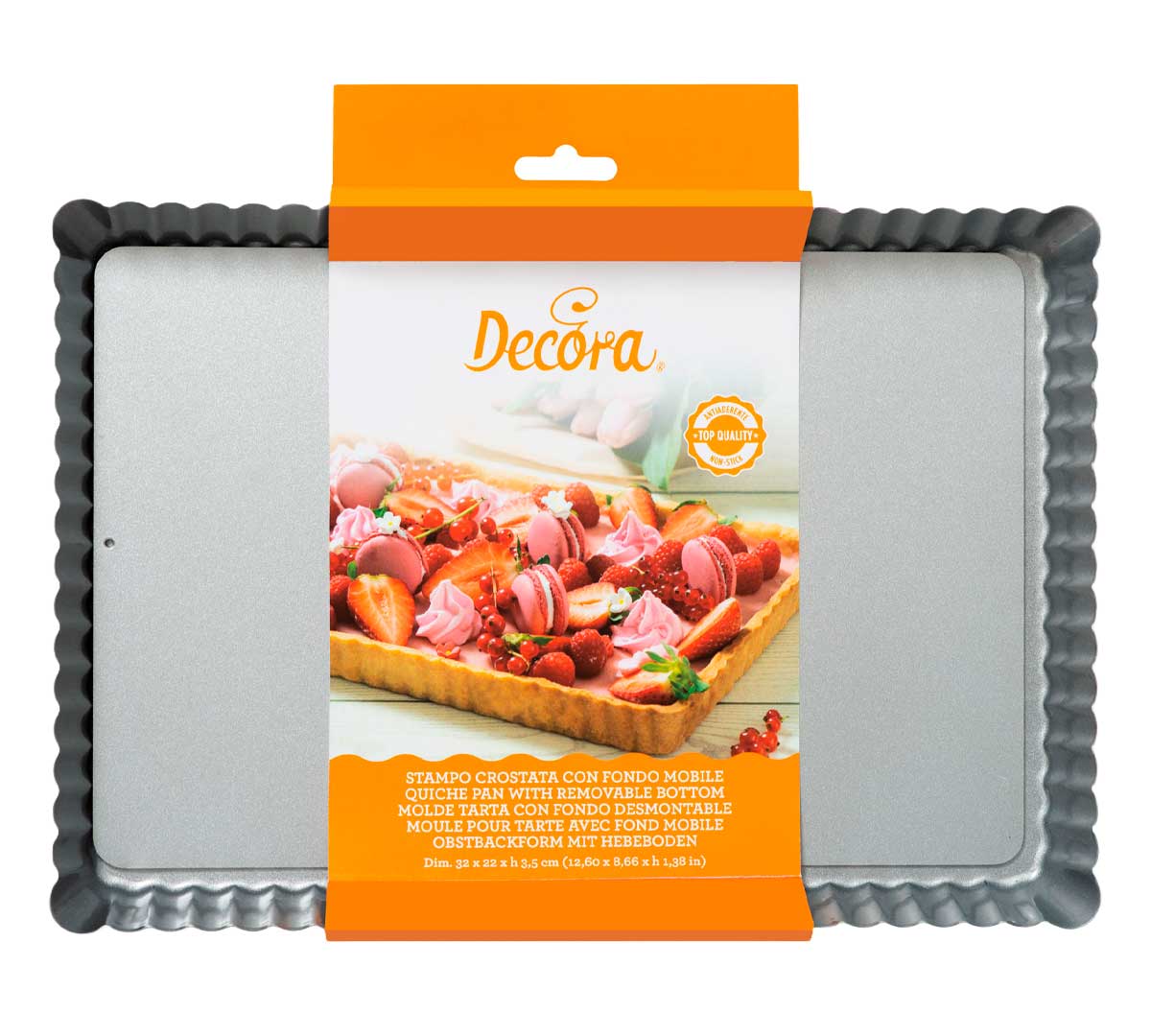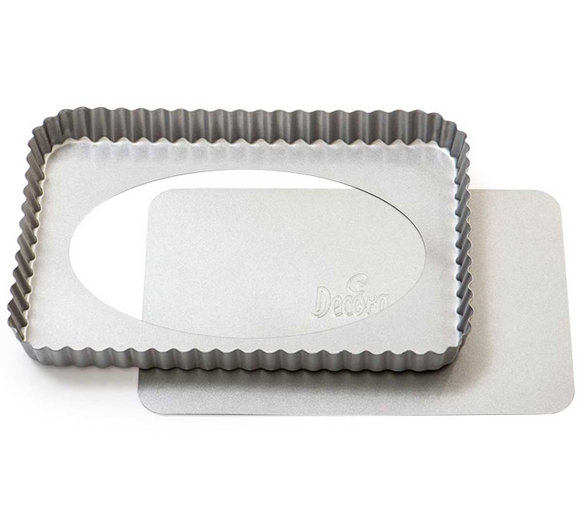 El Molde Tarta Fondo Desmontable Rectangular Decora es una solución profesional para obradores y cocinas de hostelería que requieren formatos amplios, precisión en el horneado y facilidad de manipulación en elaboraciones dulces y saladas.