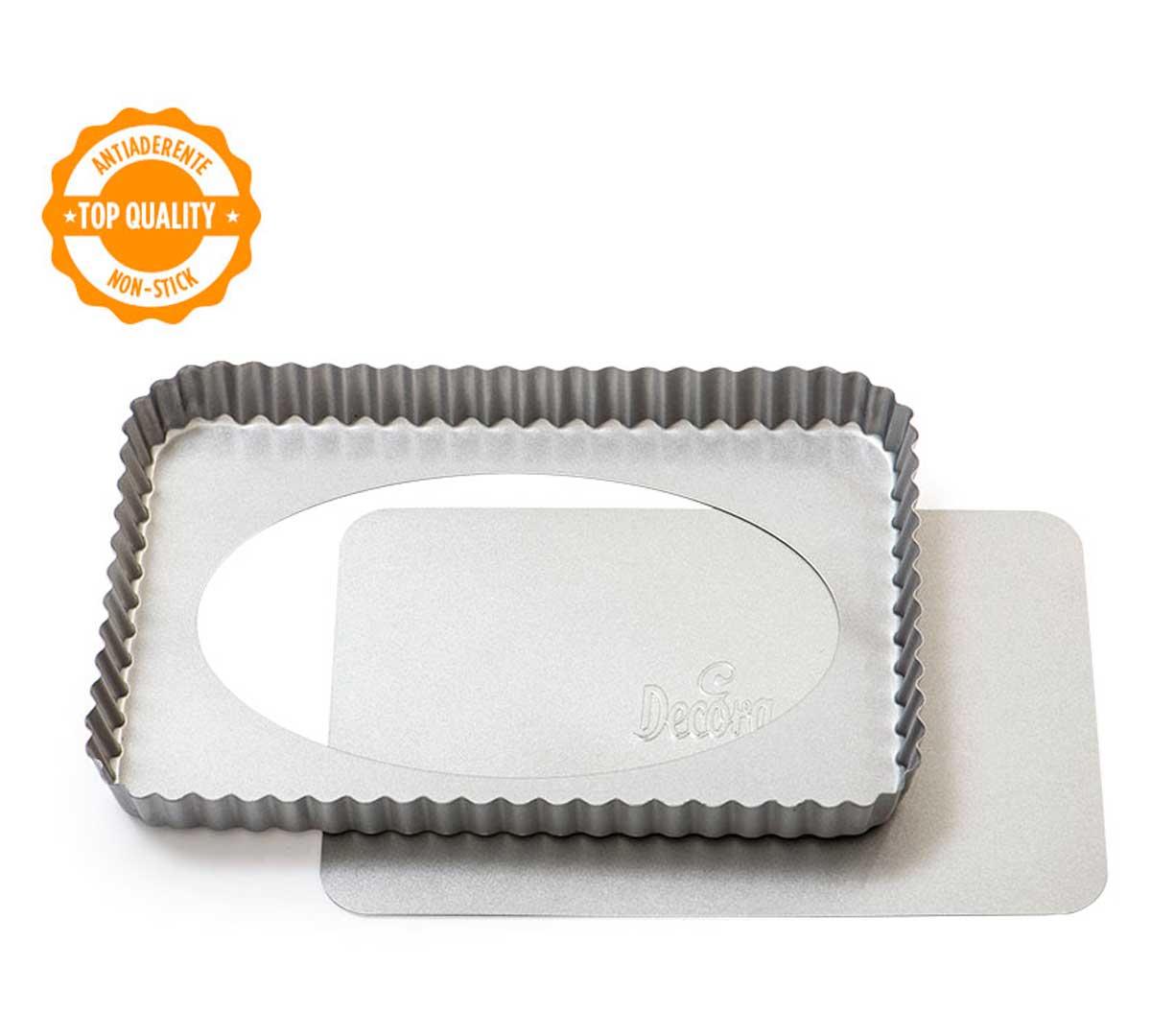 Molde rectangular profesional para tartas y crostatas con fondo desmontable, fabricado en acero antiadherente. Diseñado para pastelería y restauración, permite elaboraciones homogéneas, desmolde limpio y una presentación perfecta para servicio profesional.