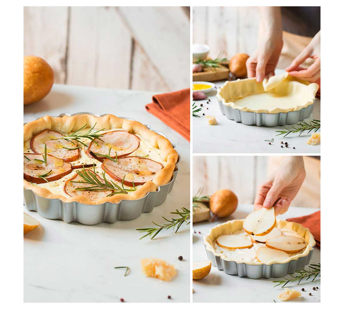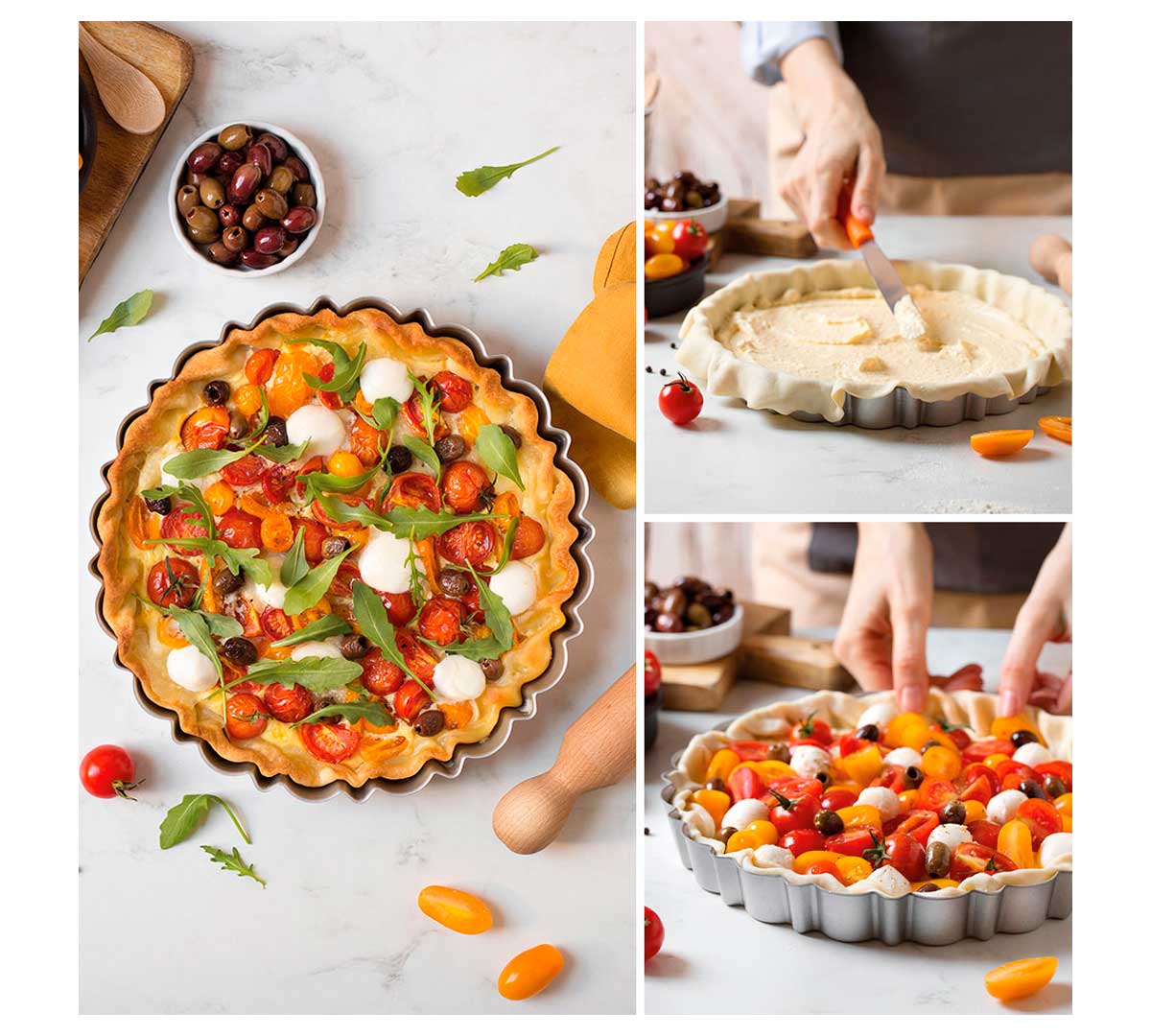 Los moldes Design Tart cuentan con un fondo removible patentado que permite desmoldar con facilidad y sin dañar la preparación, ideal para tartas y quiches tanto dulces como saladas. Este diseño mejora la presentación final y reduce tiempos en el alzado del producto.
