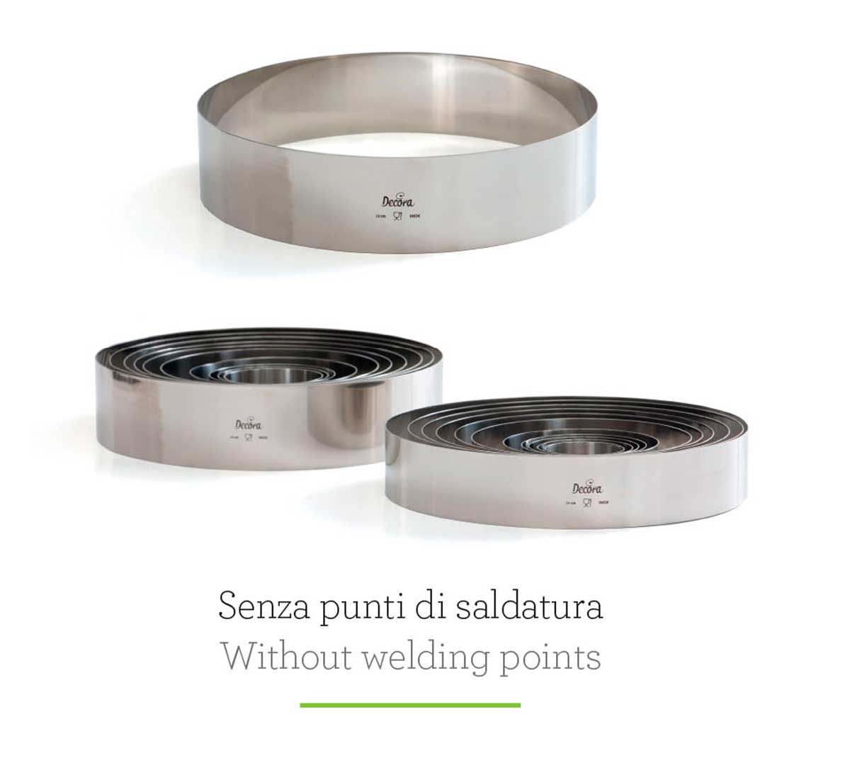 Los Moldes Inox Redondos Serie Sagome Decora son una herramienta versátil para obradores y cocinas profesionales que buscan precisión, limpieza de formas y máxima adaptabilidad tanto en preparaciones en frío como en horneado.