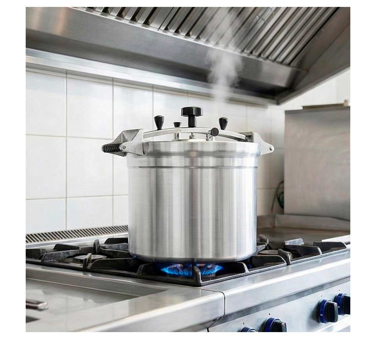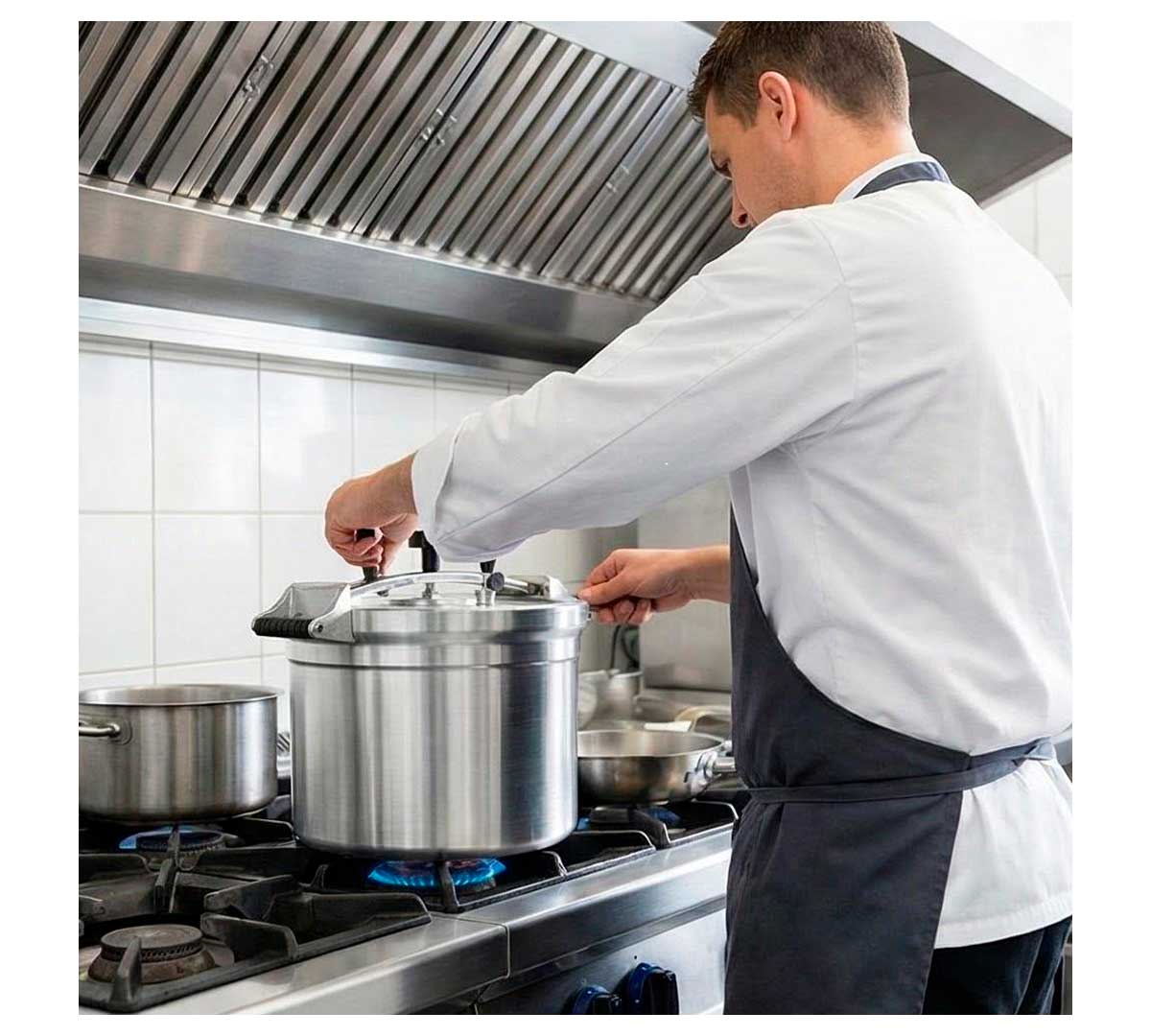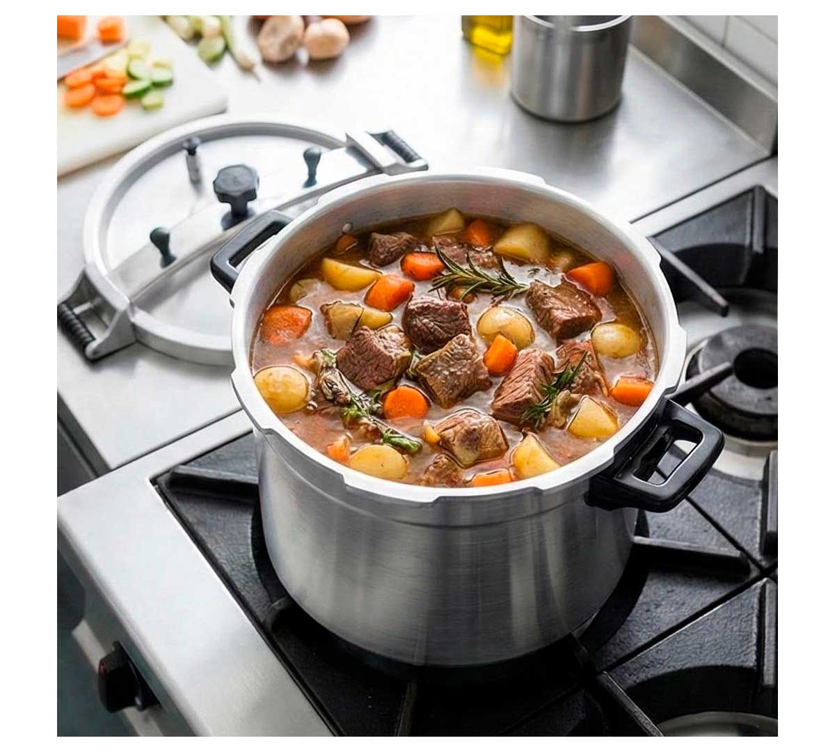 Olla a presión de aluminio. Su diseño es elegante, selecto y de gran durabilidad. Reduce los tiempos de cocción hasta un 70% y ahorra energía. Dispone de triple sistema de seguridad.