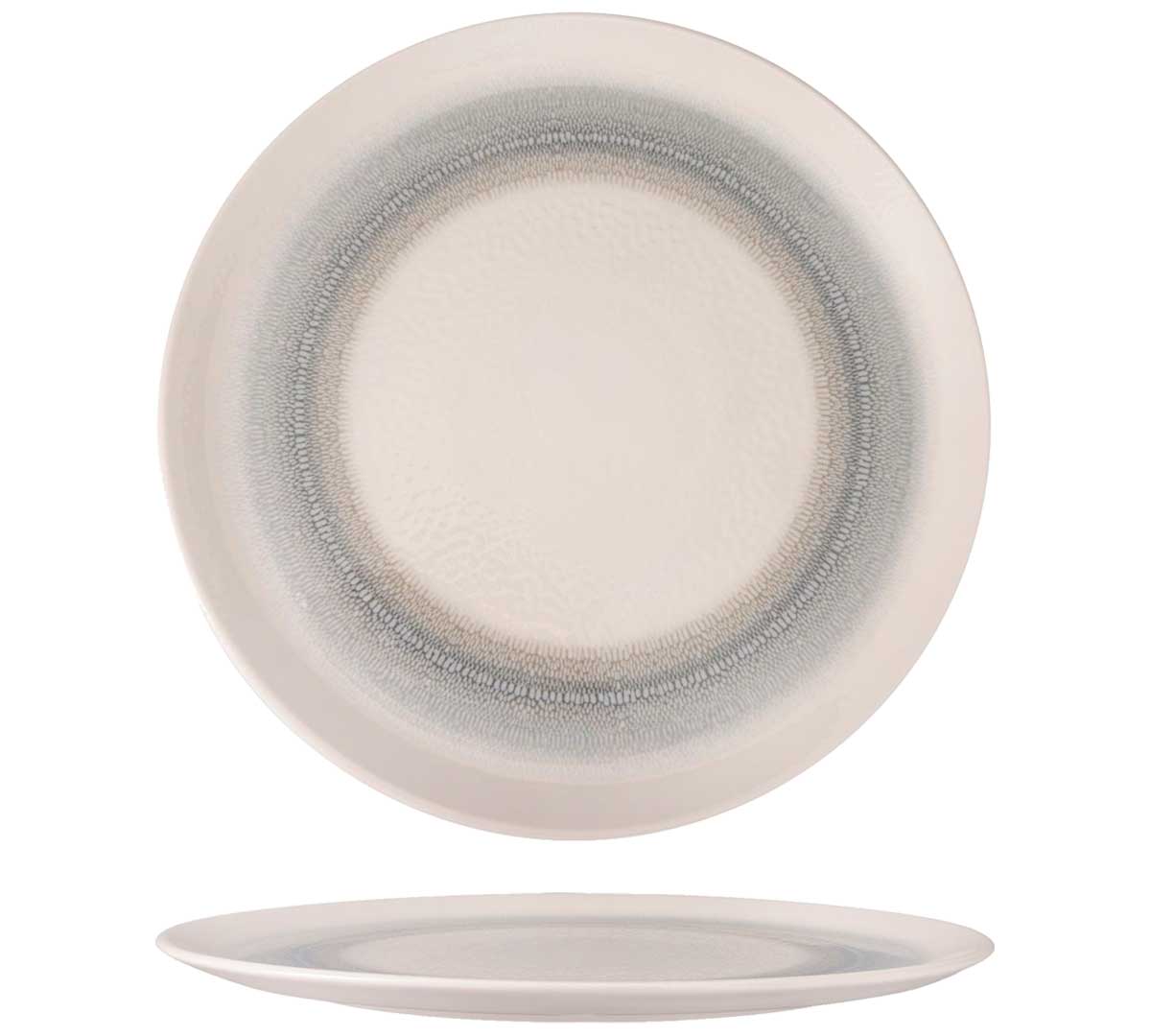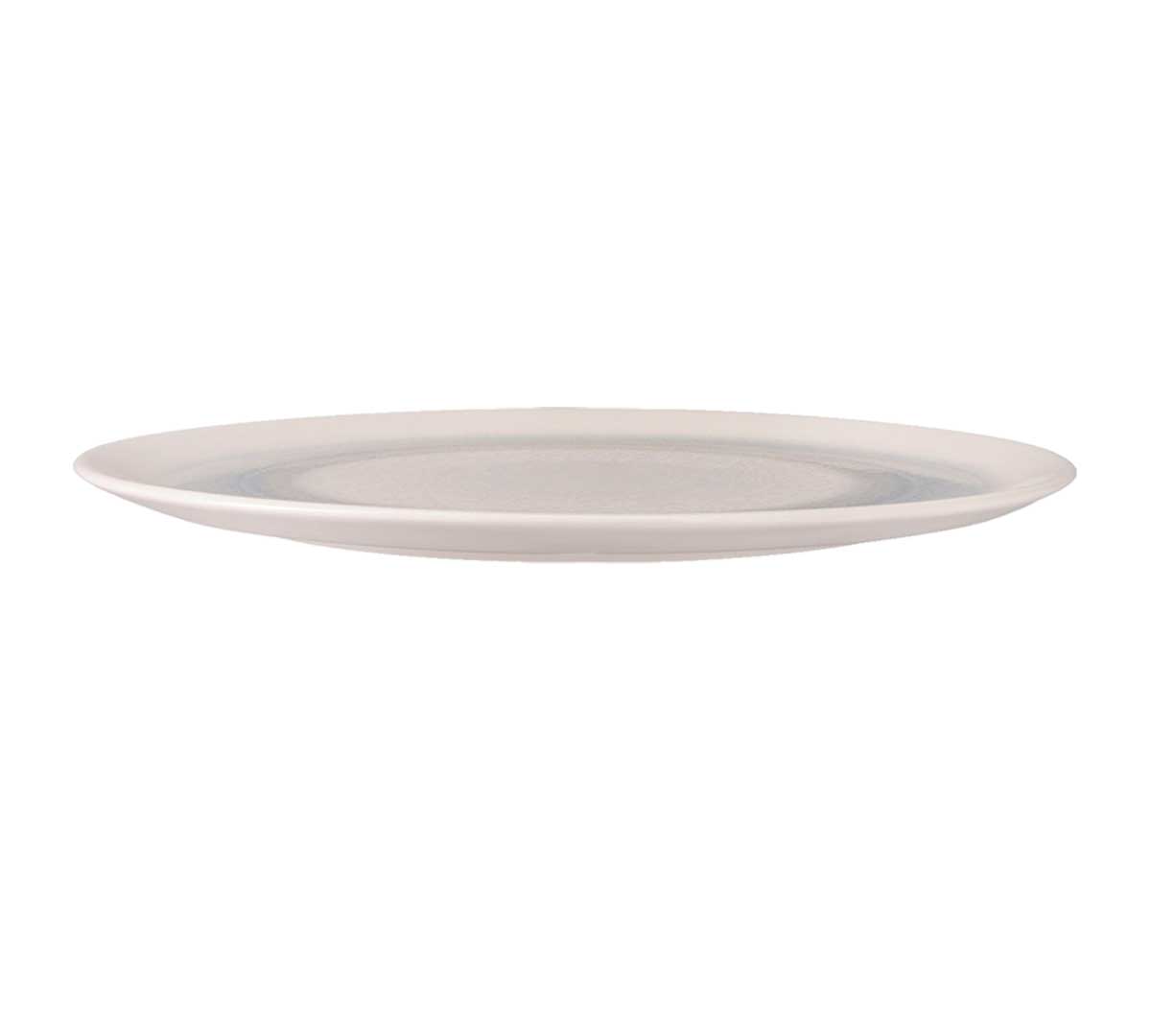 Plato profesional de porcelana vitrificada en tono azul grisáceo. Diseñado para pizzerías, restaurantes y hoteles que buscan una presentación elegante, resistente y moderna para pizzas y elaboraciones de gran formato.