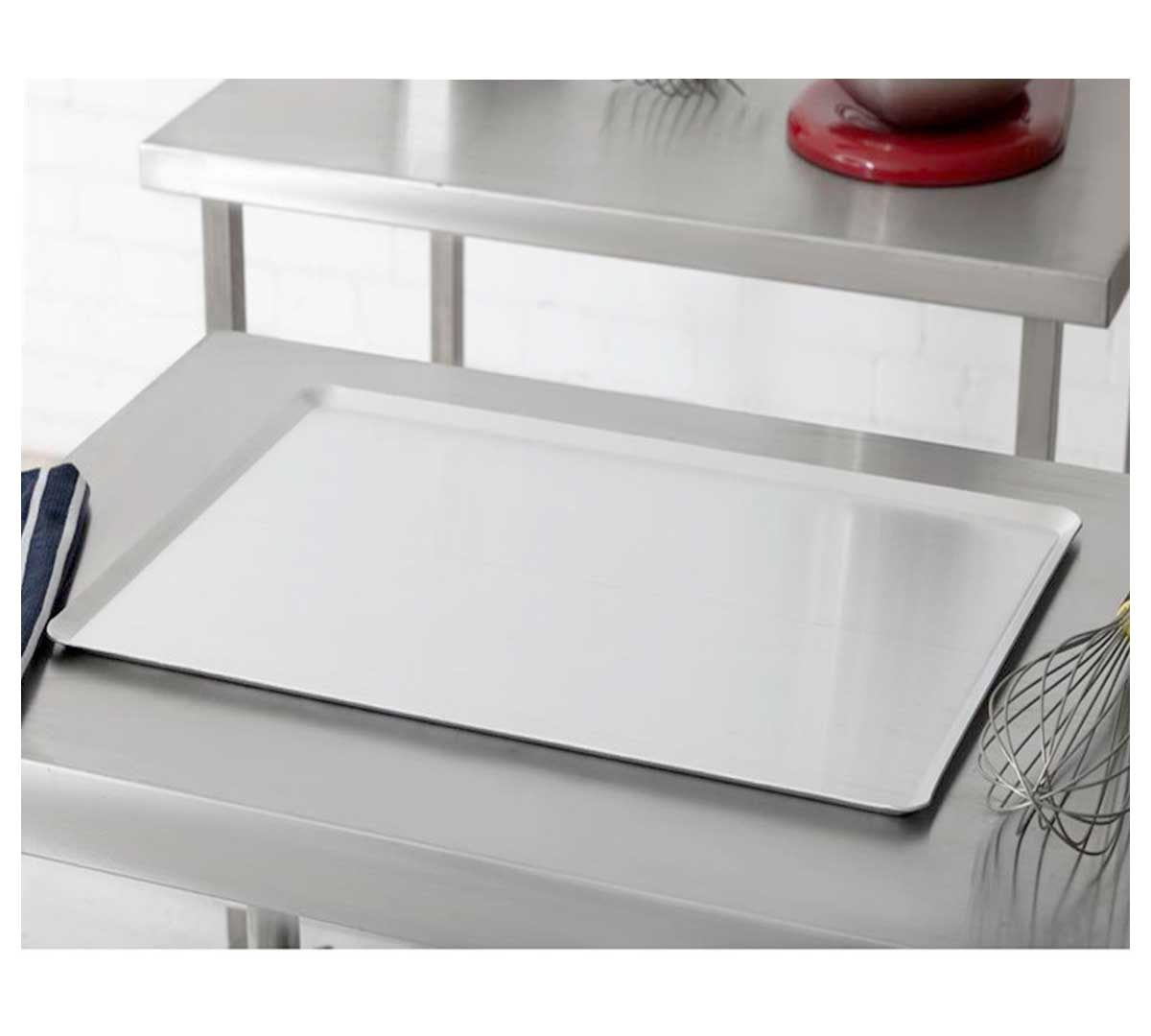 Bandeja para horno con bordes inclinados y fabricada en aluminio. Esta disponible en dos medidas y es ideal para un uso en pastelerías y restaurantes.