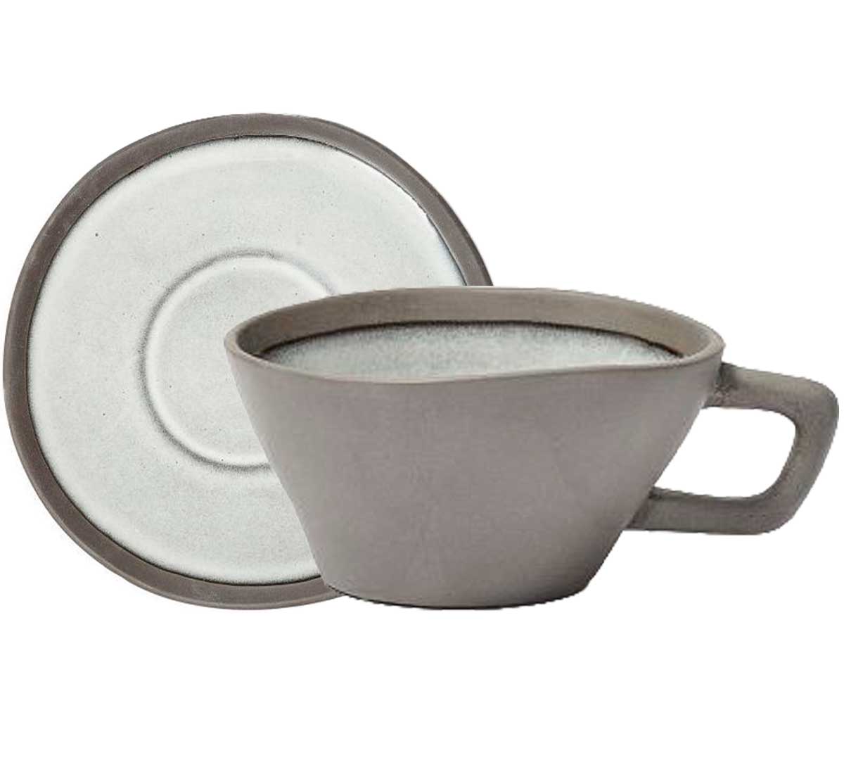 Taza de café y platillo de stoneware profesional diseñado para el servicio de café en restauración. Su estética contemporánea y acabado esmaltado aportan una imagen cuidada y coherente con el resto de la colección Laguna.