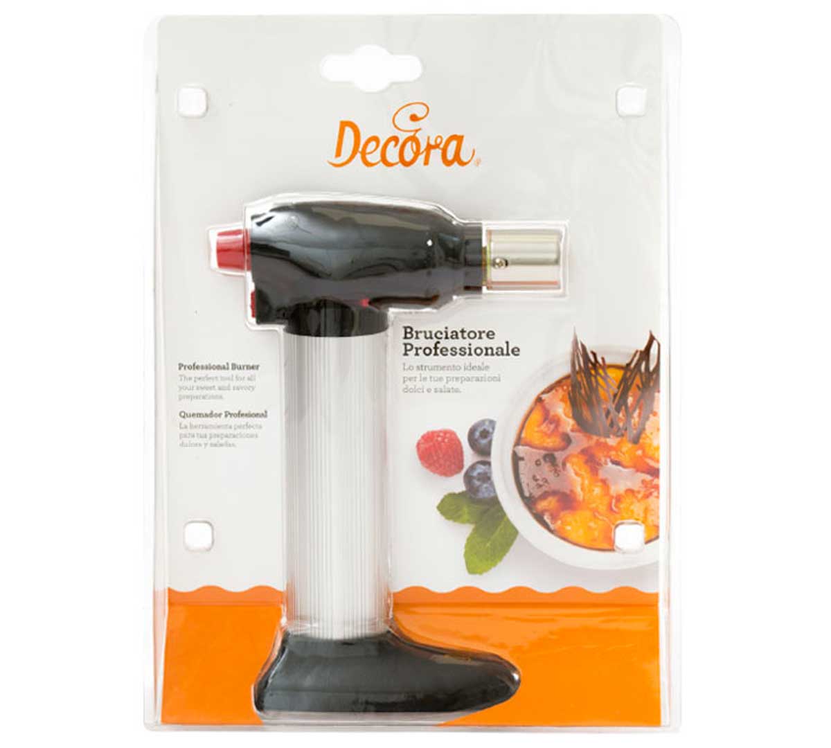 El Quemador Profesional Decora es una herramienta esencial en cocinas profesionales para aplicar calor directo con precisión, facilitando acabados crujientes y técnicas de alta cocina tanto en repostería como en platos salados.