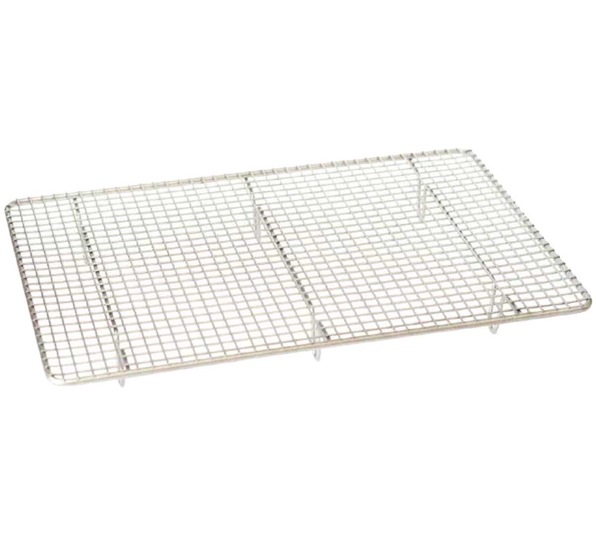 Rejilla enfriadora profesional rectangular con malla estrecha, fabricada en metal antiadherente. Diseñada para pastelería y restauración, permite enfriar preparaciones dulces y saladas de forma uniforme y facilita el glaseado limpio recuperando el exceso.