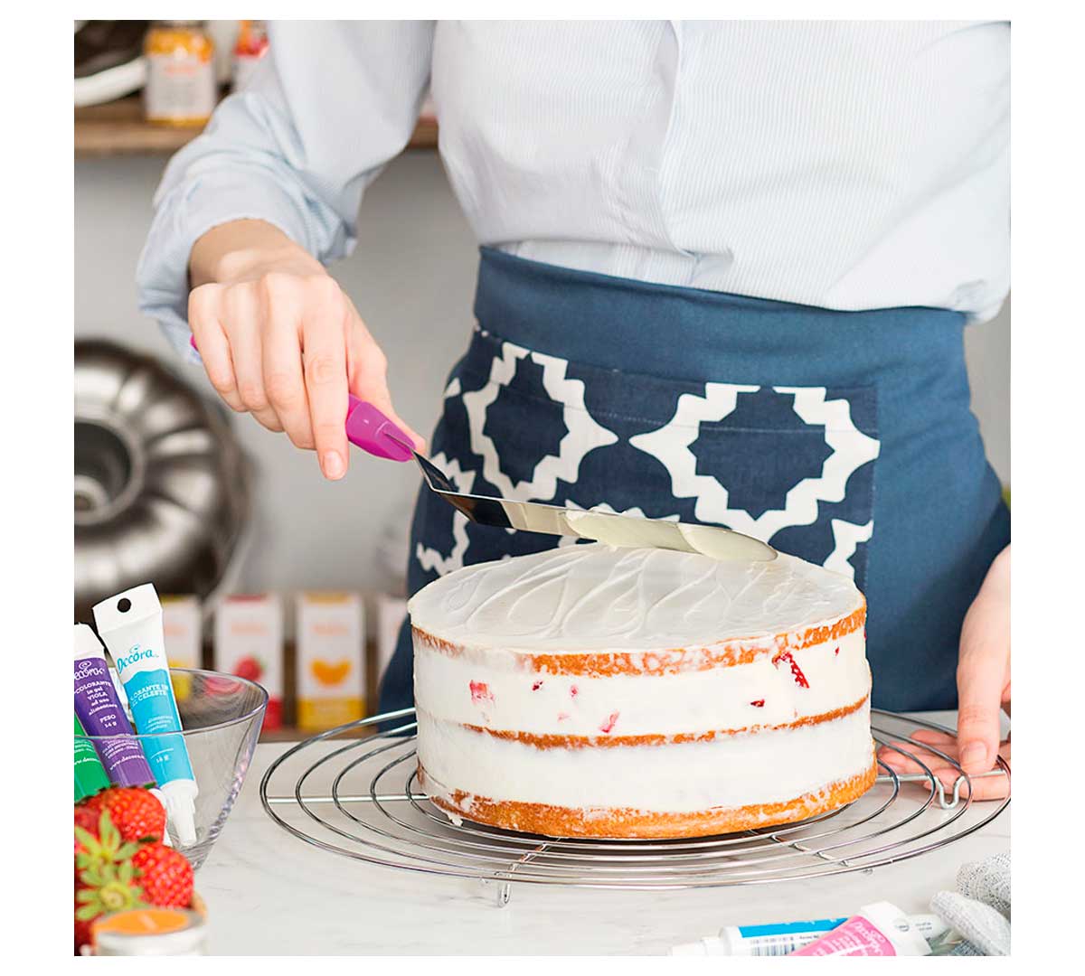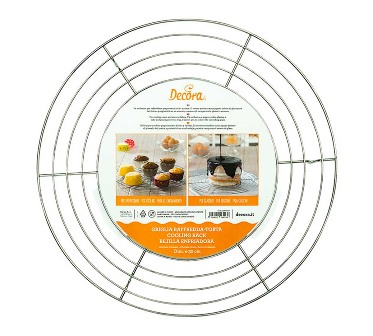La Rejilla Enfriadora 9260277 Decora pertenece a la gama de utensilios básicos de pastelería profesional de la marca, fabricada en acero cromado y pensada para mejorar el acabado final y la manipulación de tartas y dulces.