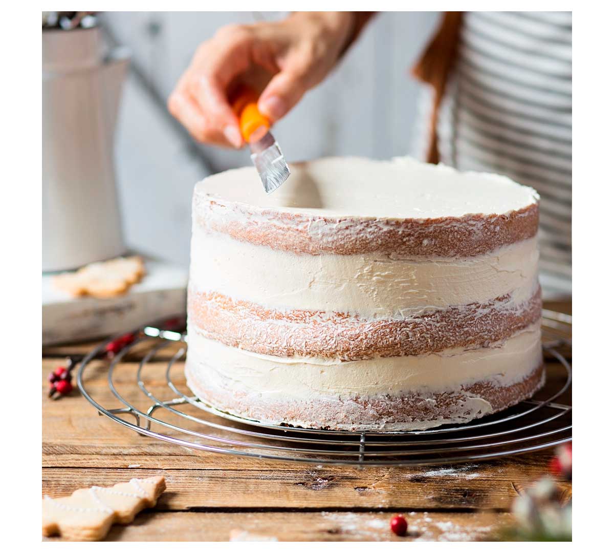 La rejilla enfriadora está diseñada para soportar el calor de las tartas recién horneadas, permitiendo un enfriamiento uniforme sin deformar la base.