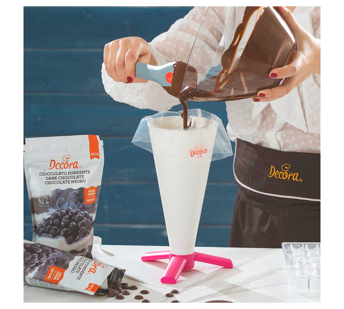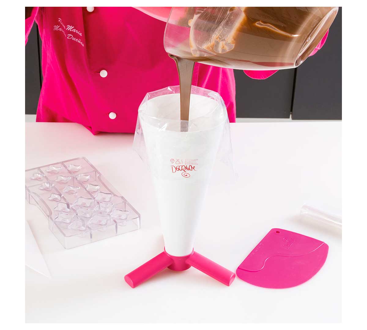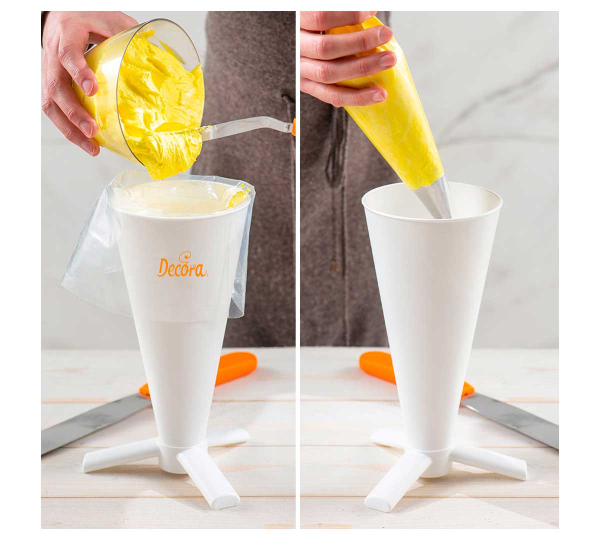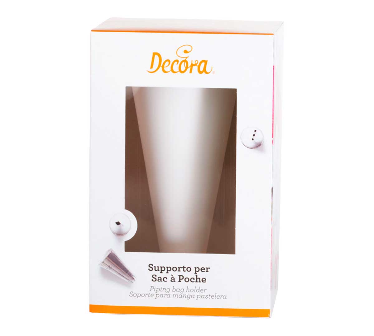 El Soporte para Manga Pastelera 9271045 Decora pertenece a la gama de utensilios básicos de pastelería profesional de la marca, pensado para optimizar el flujo de trabajo y mantener la manga siempre lista para su uso.