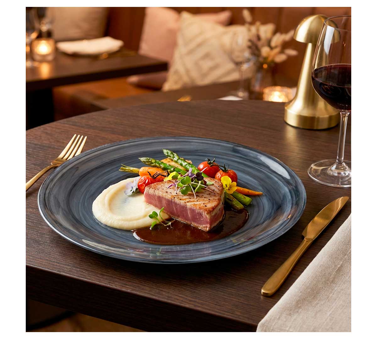 La Vajilla Alabastro Negro ofrece un diseño espectacular y profesional que transforma cualquier plato en una propuesta visualmente potente. Es la elección ideal para hosteleros que buscan diferenciarse con una vajilla moderna, resistente y estilísticamente única.