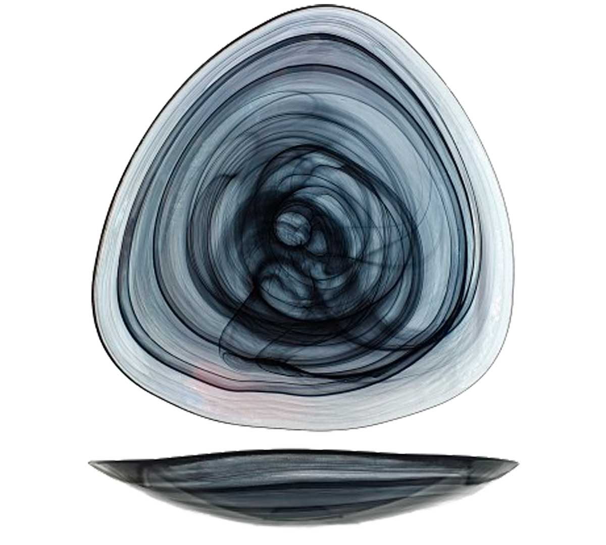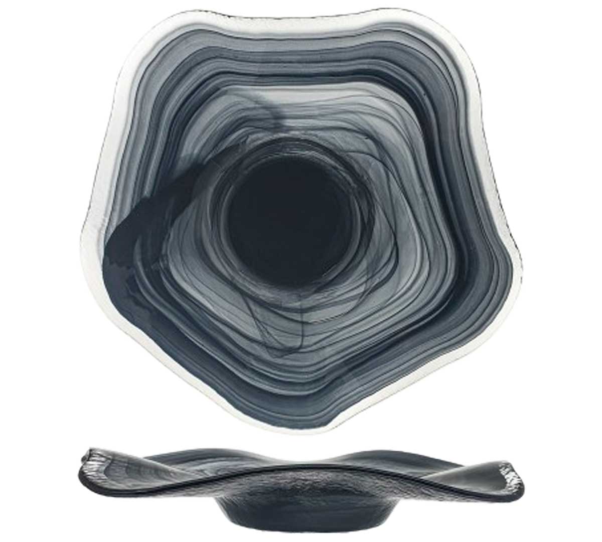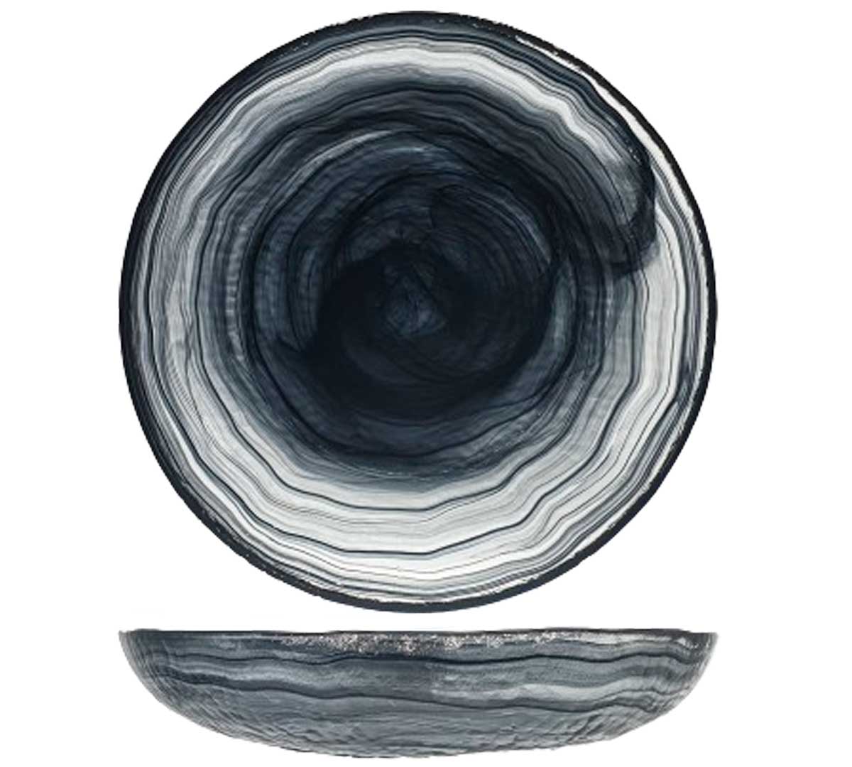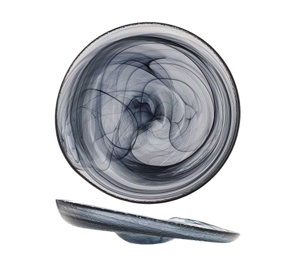 Vajilla de vidrio en acabado negro alabastro. Resistente y elegante. Ideal para realzar la presentación de platos en cualquier mesa profesional.
