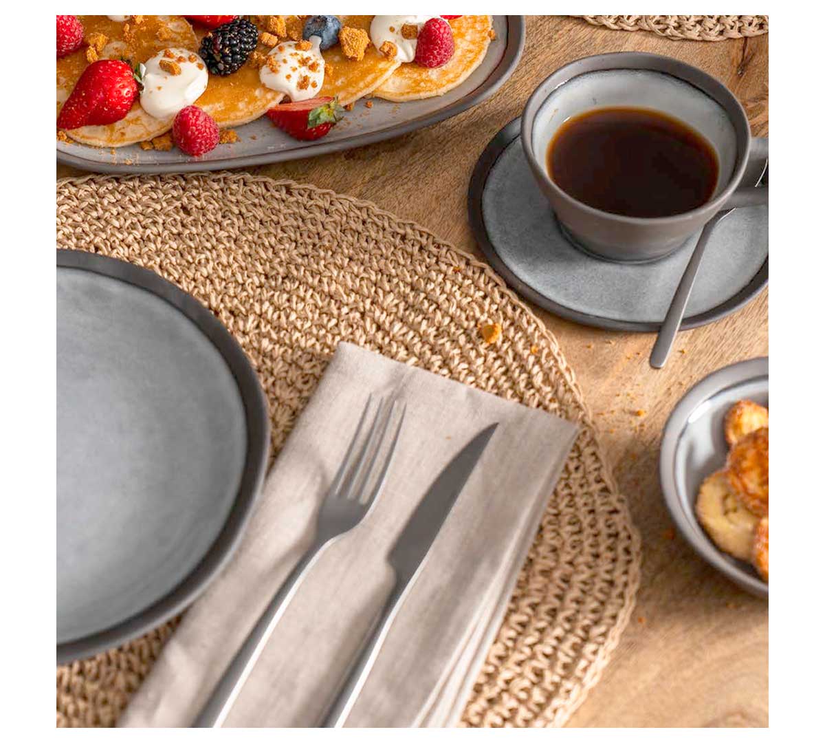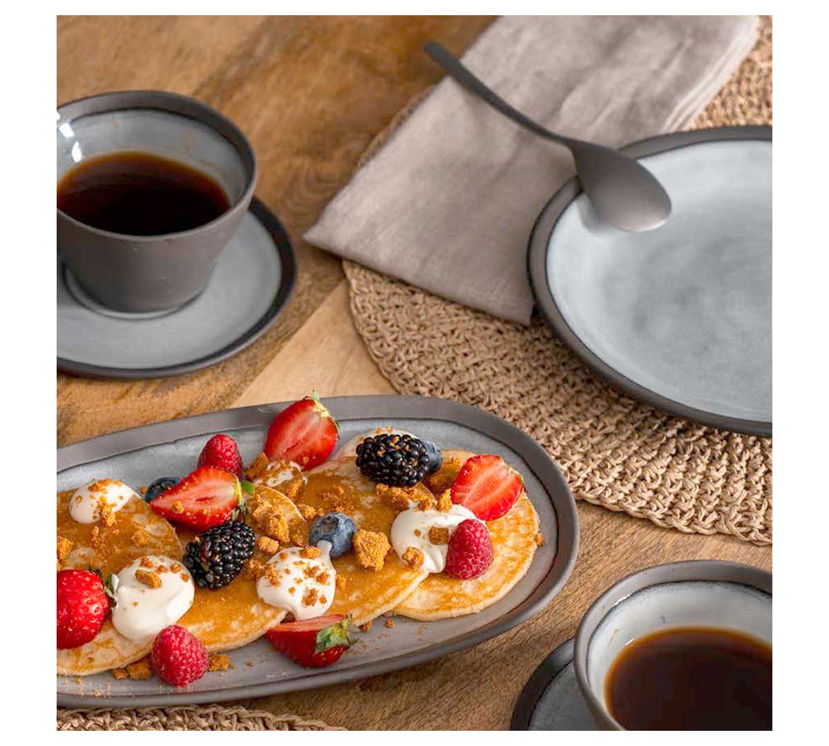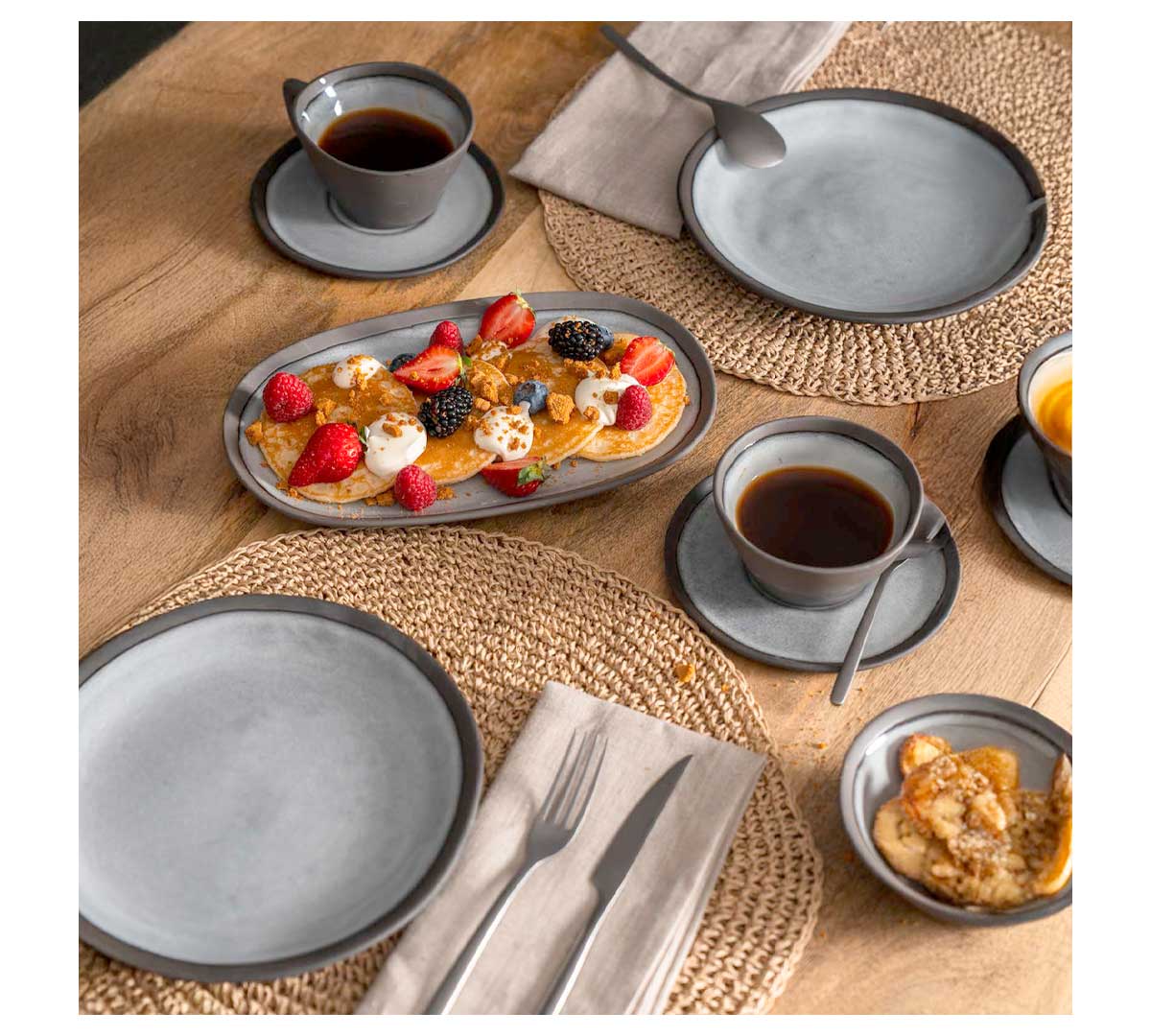 La Vajilla Cerámica Laguna Comas es una colección de vajilla de diseño actual, fabricada en stoneware, que aporta un toque distintivo y elegante a cualquier mesa.