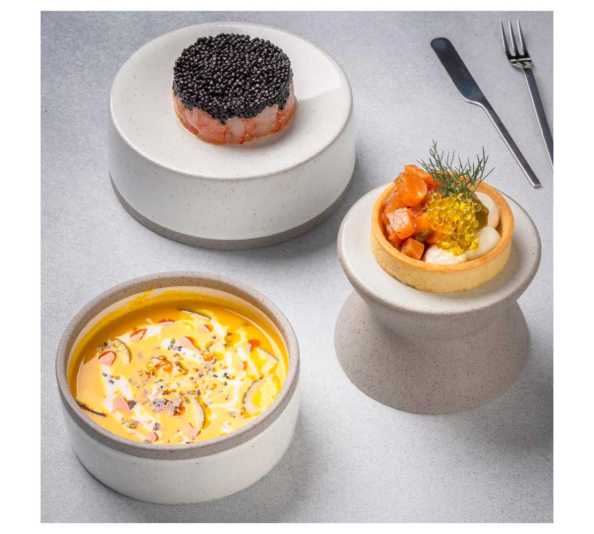 La colección Dolmen no acompaña el plato, lo construye. Cada pieza refuerza la narrativa gastronómica del chef y eleva la experiencia visual y sensorial del comensal.