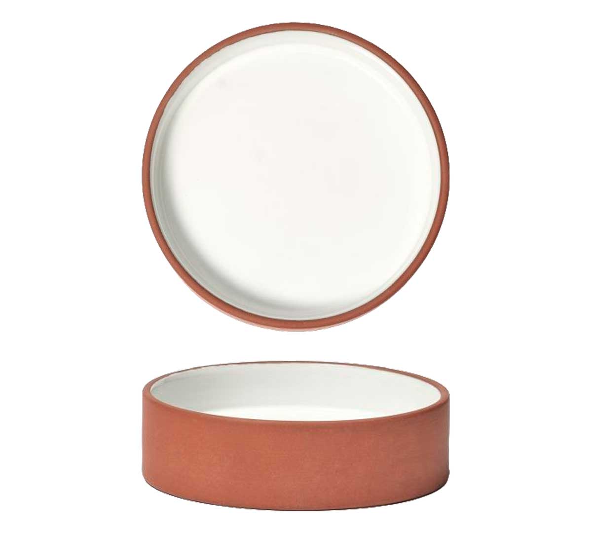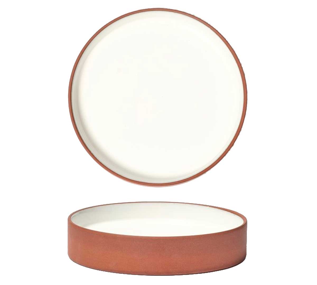 Los platos 2 en 1 reversibles de la vajilla Terra combinan superficie plana y bol en un solo producto. Esto facilita presentar platos con salsas o líquidos sin necesidad de múltiples piezas, aportando versatilidad y optimización en el servicio.
