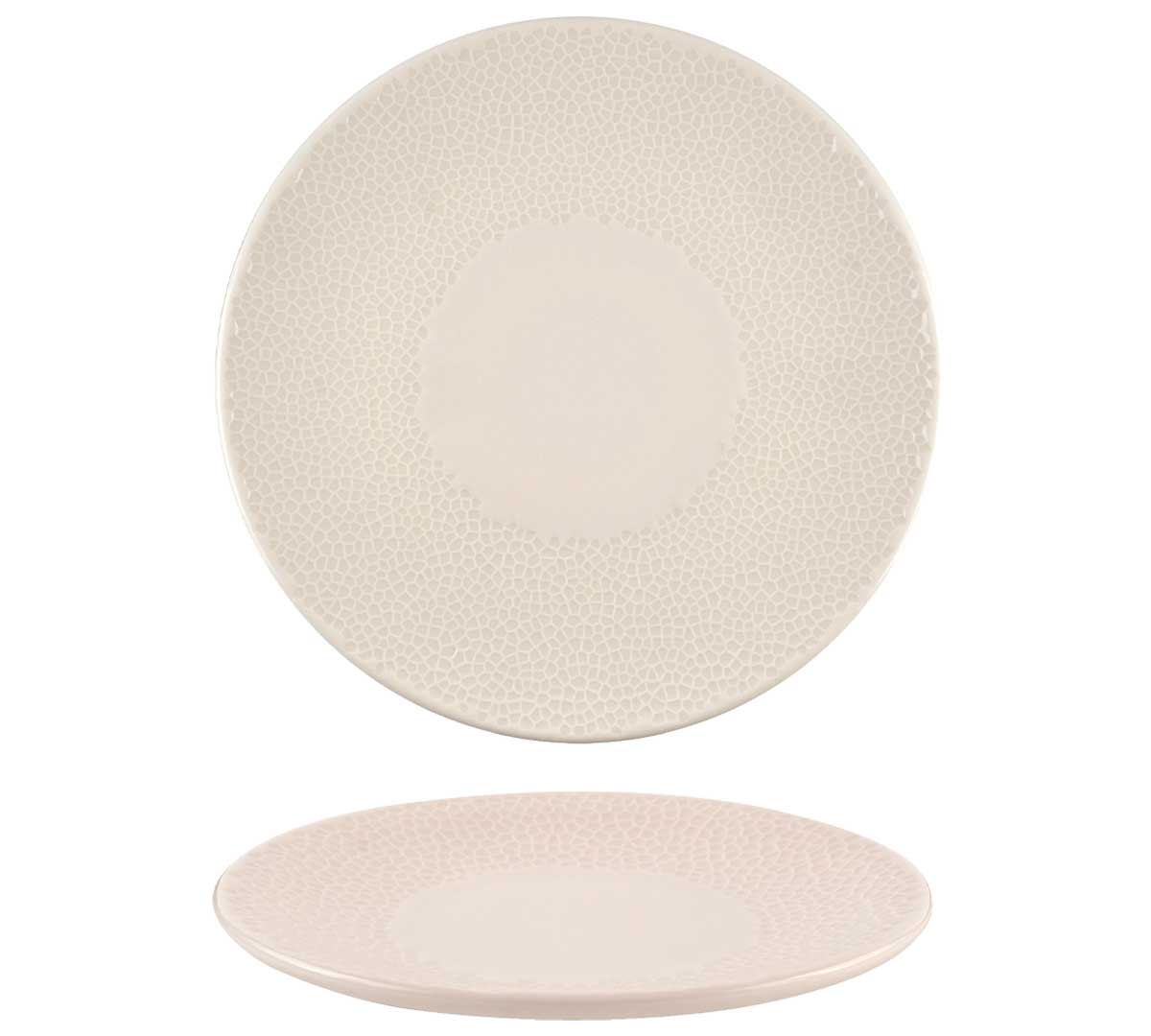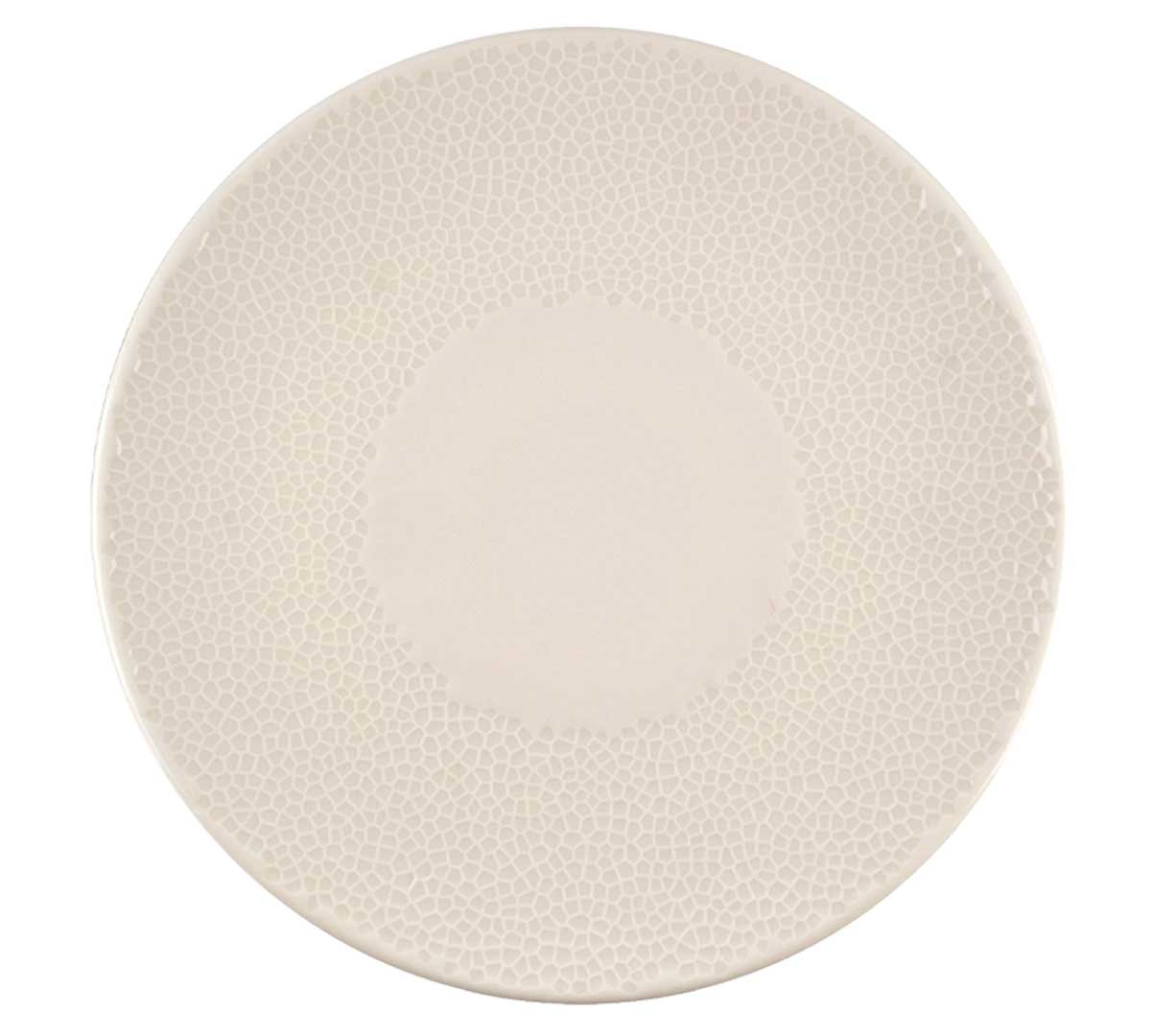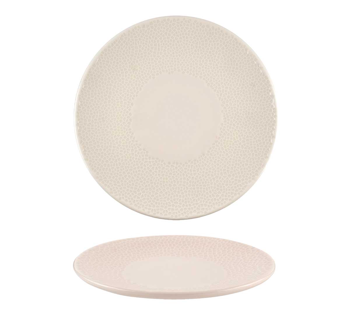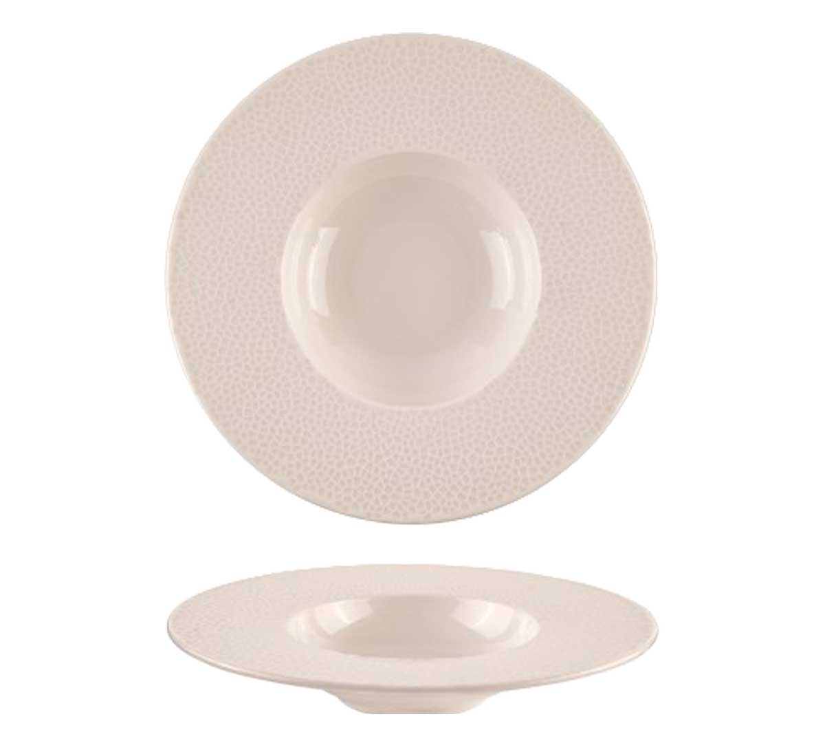Vajilla profesional en porcelana texturada color crema. Diseñada para restaurantes y hoteles que buscan una mesa elegante, moderna y extremadamente resistente para uso intensivo en hostelería.