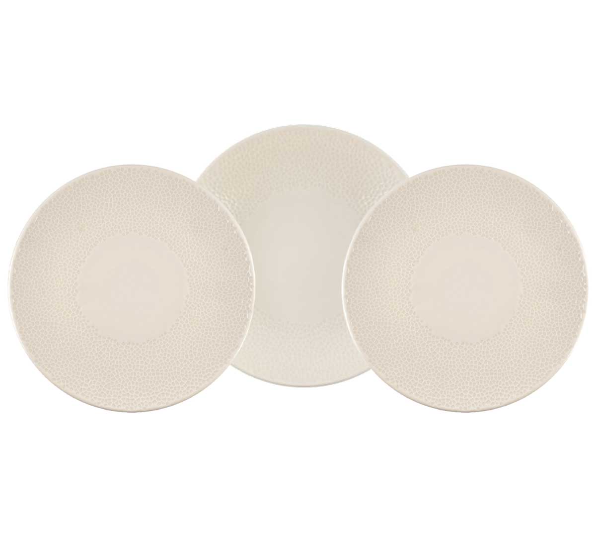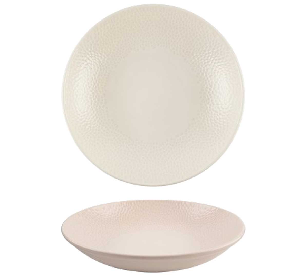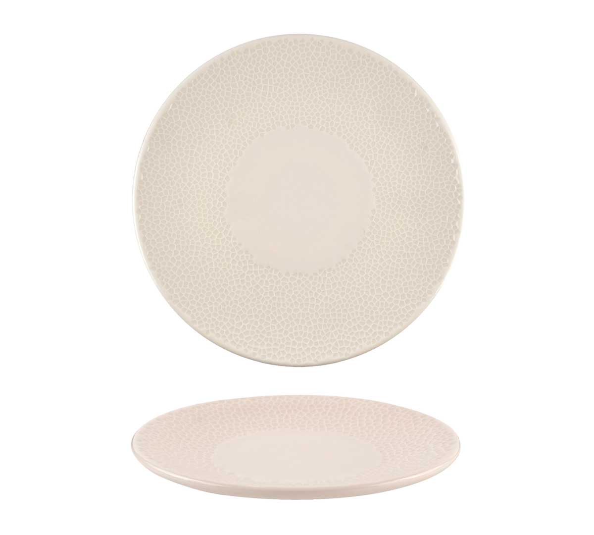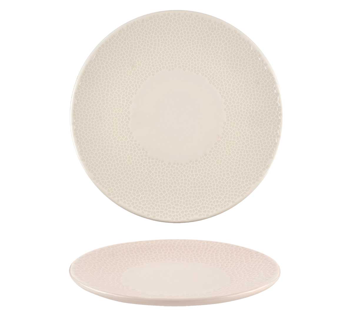 Vajilla profesional en porcelana texturada color crema. Diseñada para restaurantes y hoteles que buscan una mesa elegante, moderna y extremadamente resistente para uso intensivo en hostelería.