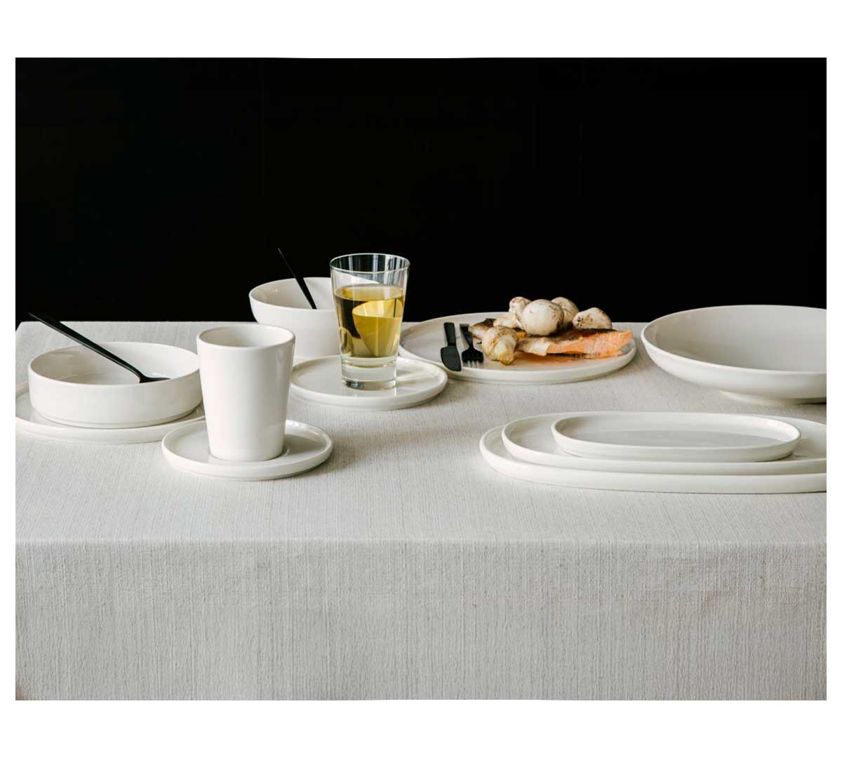 Esta colección de platos y piezas de porcelana destaca por sus líneas limpias, su acabado liso y su color blanco inmaculado, que actúa como un auténtico lienzo para realzar los colores y texturas de cualquier elaboración culinaria.