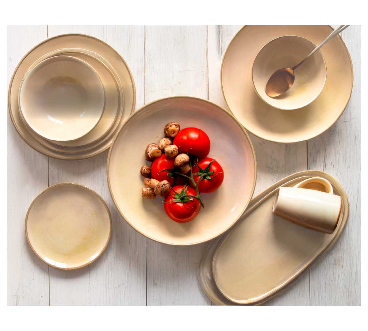 Esta colección de vajilla profesional, también conocida como juego de platos de porcelana, destaca por su diseño elegante en tonos suaves y su estructura robusta, pensada para aportar distinción y funcionalidad a cualquier mesa.