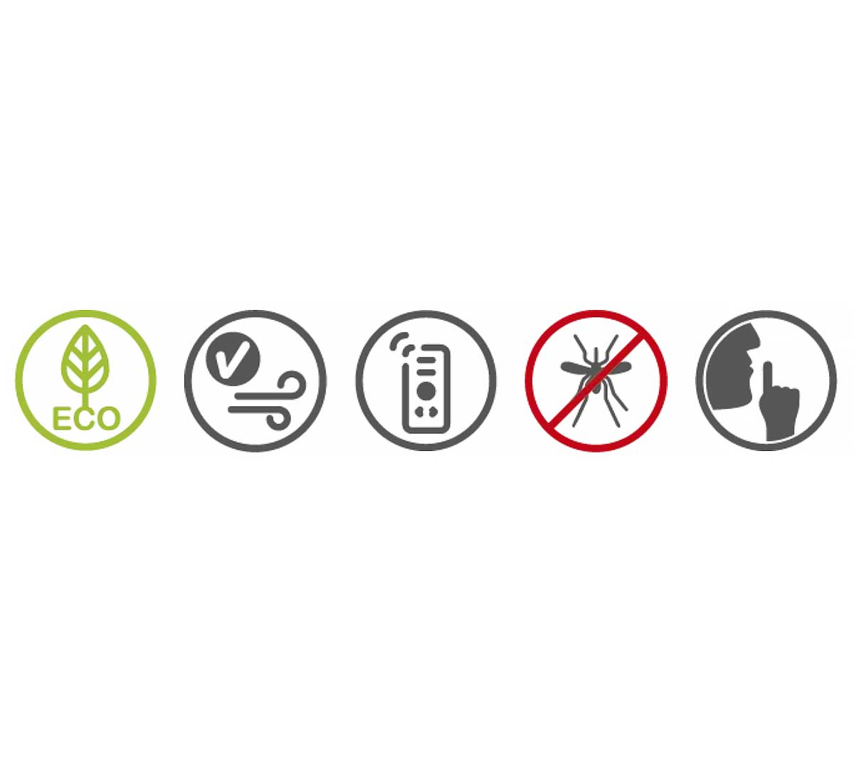 Climatizador perfecto para la época estival. Refresca y limpia el ambiente con tres velocidades y oscilación automática. Incorpora una bandeja anti-insectos con luces UV. Puede controlarse por mando a distancia o por el móvil. Cubre un área aproximada de 70 m².