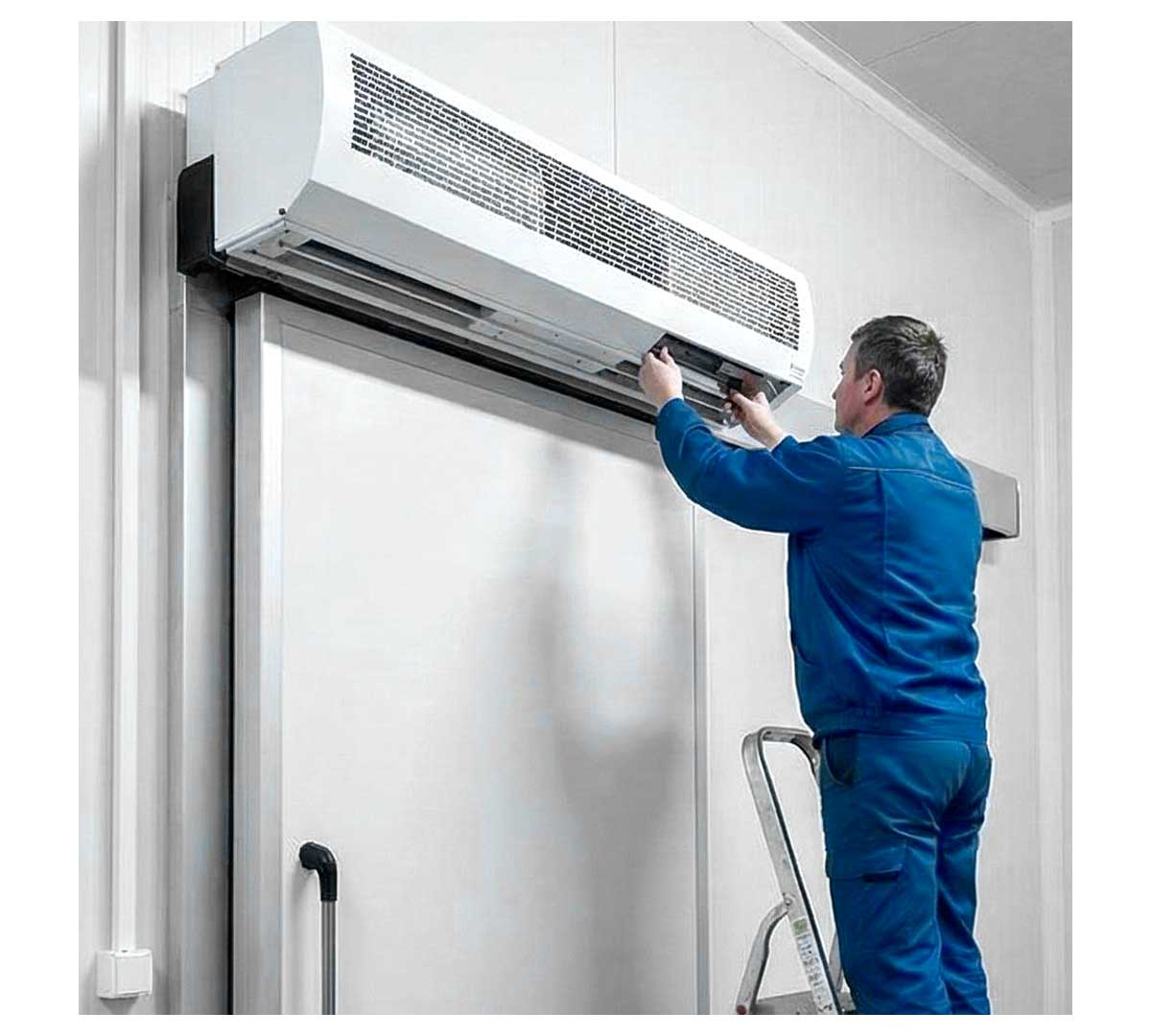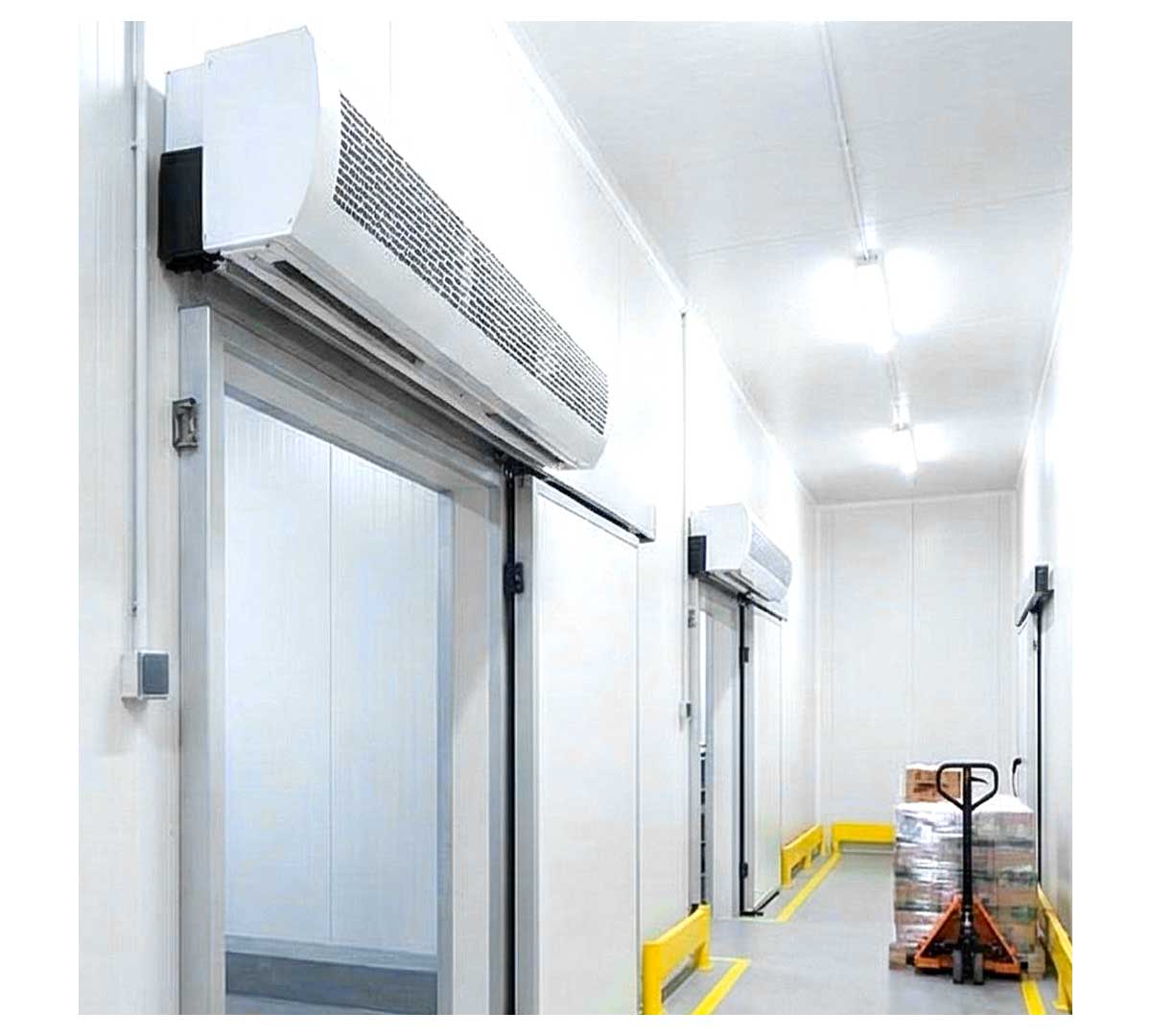 Cortina de aire industrial sin calefacción recomendada para puertas de hasta 6 metros y cámaras frigoríficas. Recomendada para uso industrial.