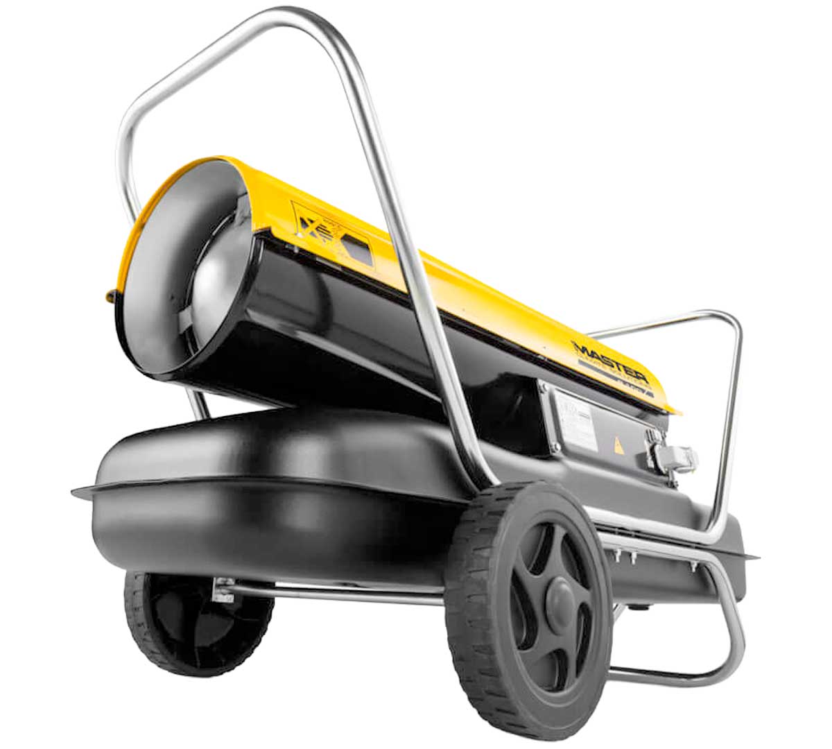 El Master Calentador Aire B 100 incluye un carro con ruedas robustas que permite fácil desplazamiento en obra o almacenes. Su construcción ligera y diseño compacto hacen que sea sencillo de manipular y mover según las necesidades del espacio, facilitando su posicionamiento y operación.