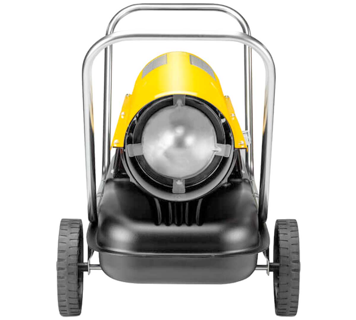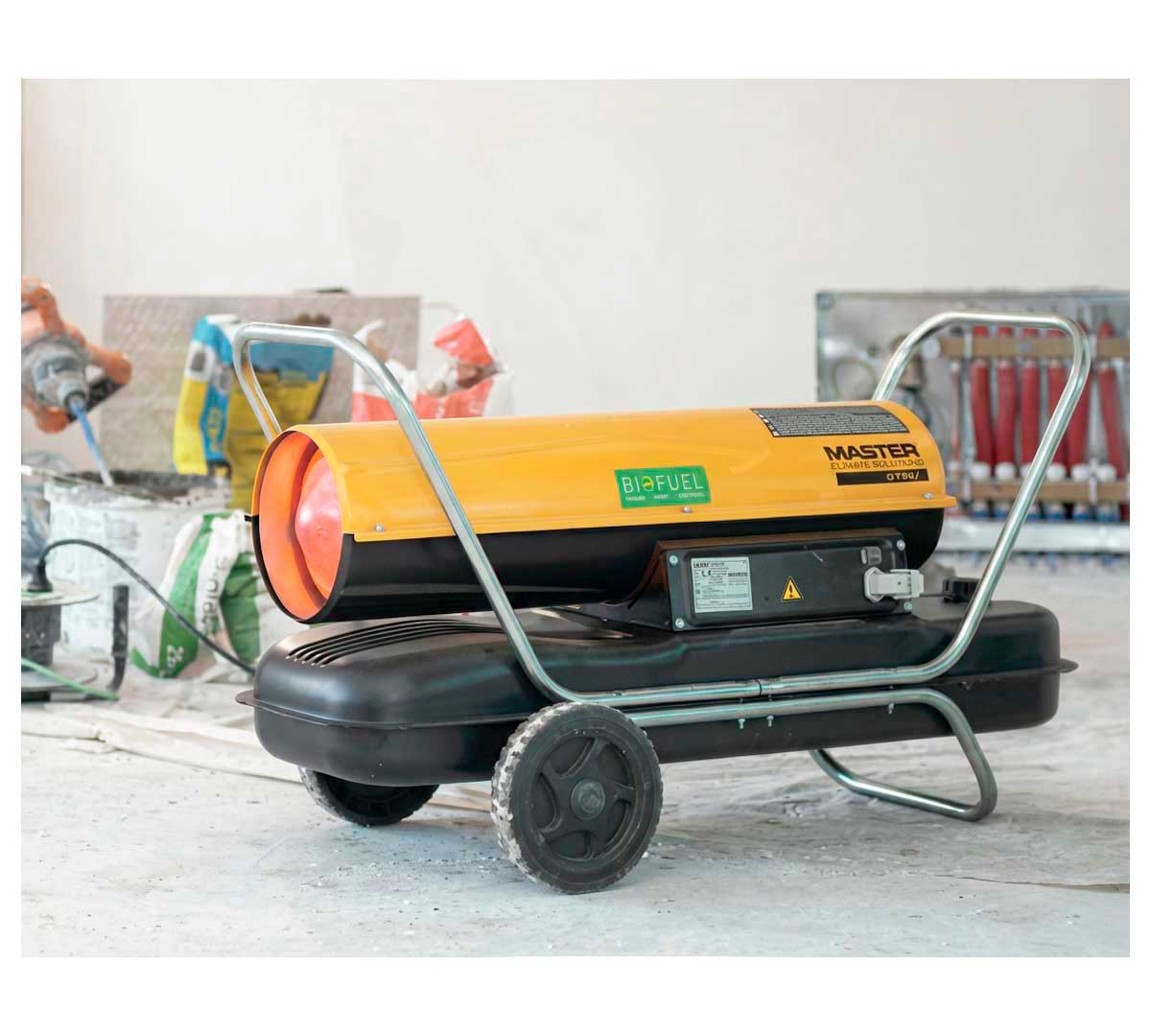 Calentador de combustión directa a gasóleo. Gran caudal de aire. De fácil manejo y transporte. Tiene un mantenimiento sencillo. Es compatible con biocombustible HVO 100, gasóleo o queroseno.