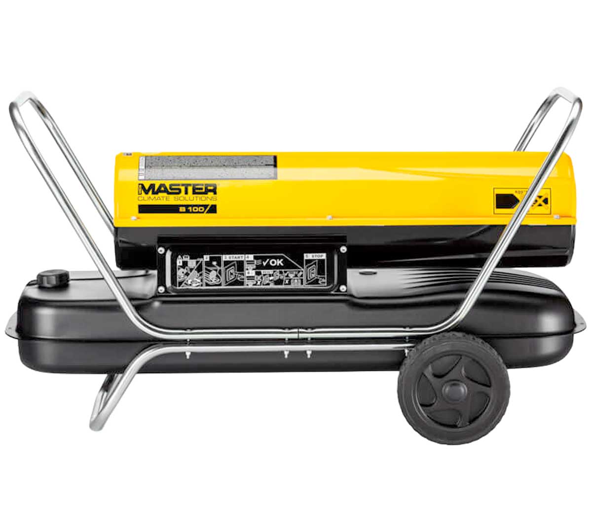 El Master B 100 proporciona una calefacción potente, segura y fácilmente transportable para entornos industriales exigentes. Su capacidad, autonomía y fiabilidad lo convierten en un equipo ideal para trabajos continuos en espacios ventilados.