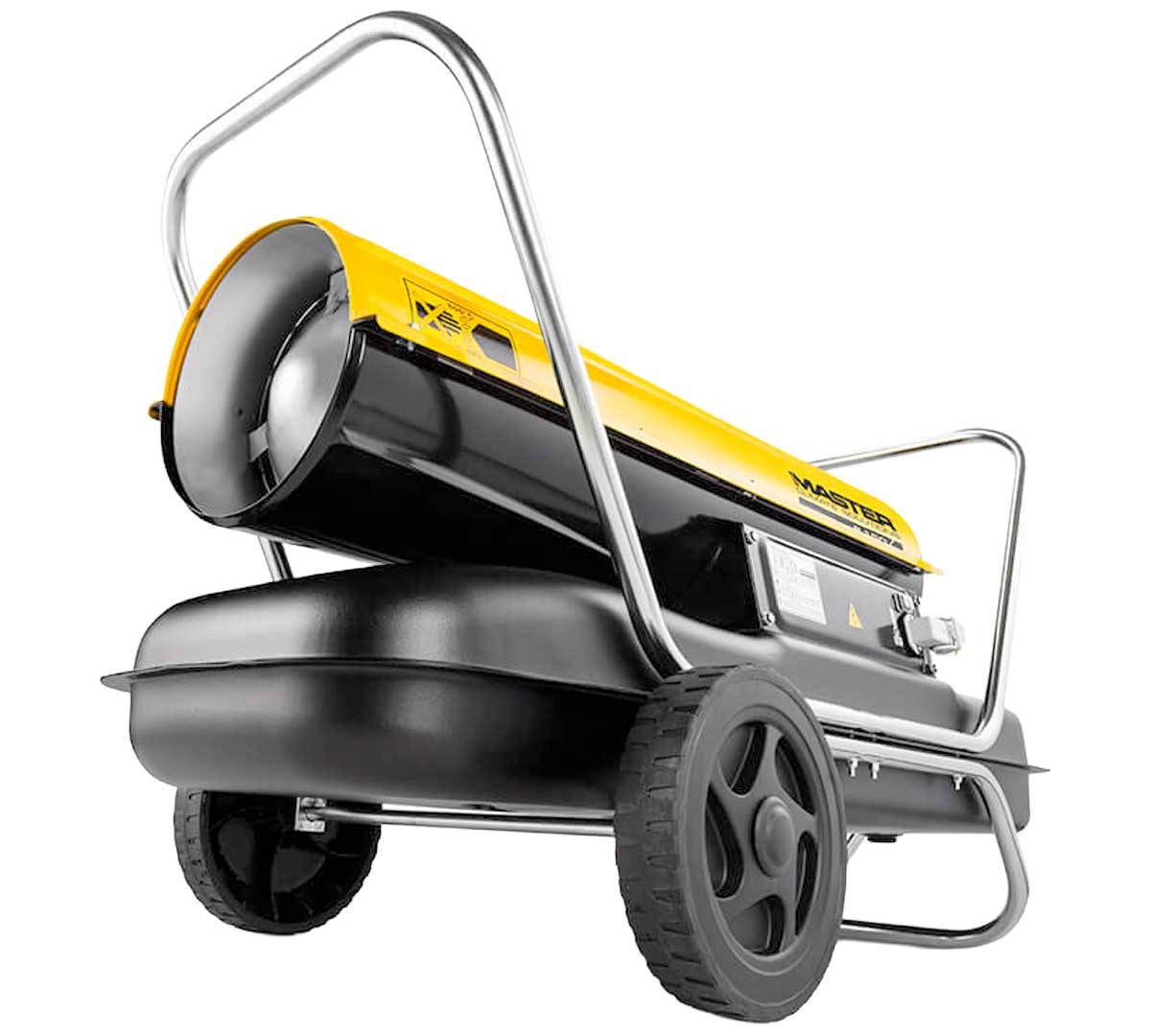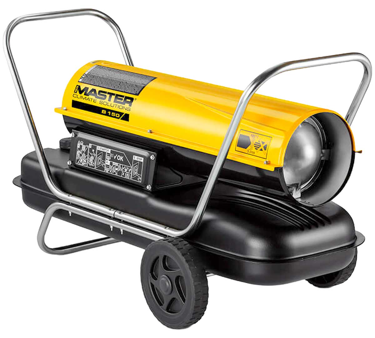 El Calentador Aire B 150 Master es un equipo de calefacción industrial de combustión directa a gasóleo, diseñado para proporcionar un gran caudal de aire caliente de forma inmediata y eficiente en espacios amplios y bien ventilados.