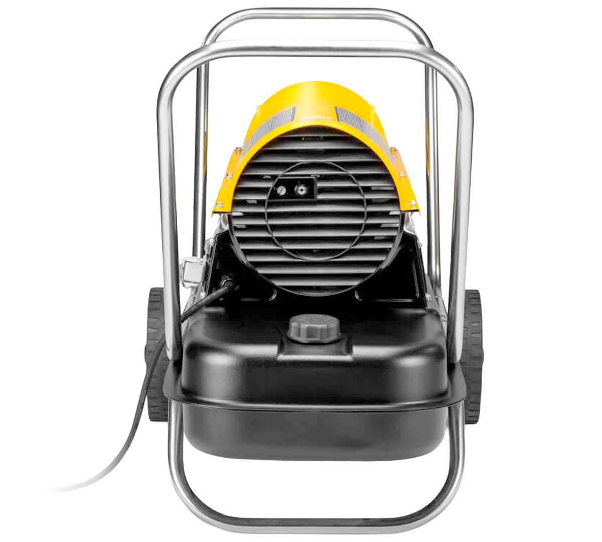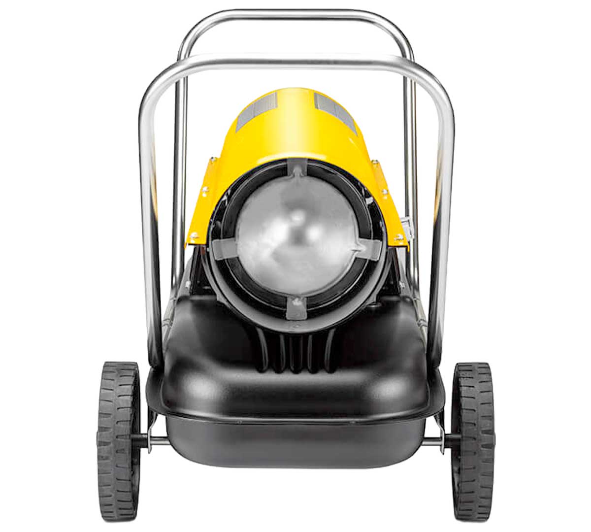Calefactor de combustión directa a gasóleo. Gran caudal de aire. Fácil de manejar y transportar. Tiene depósito integrado. De mantenimiento sencillo. Compatible con biocombustible HVO 100.