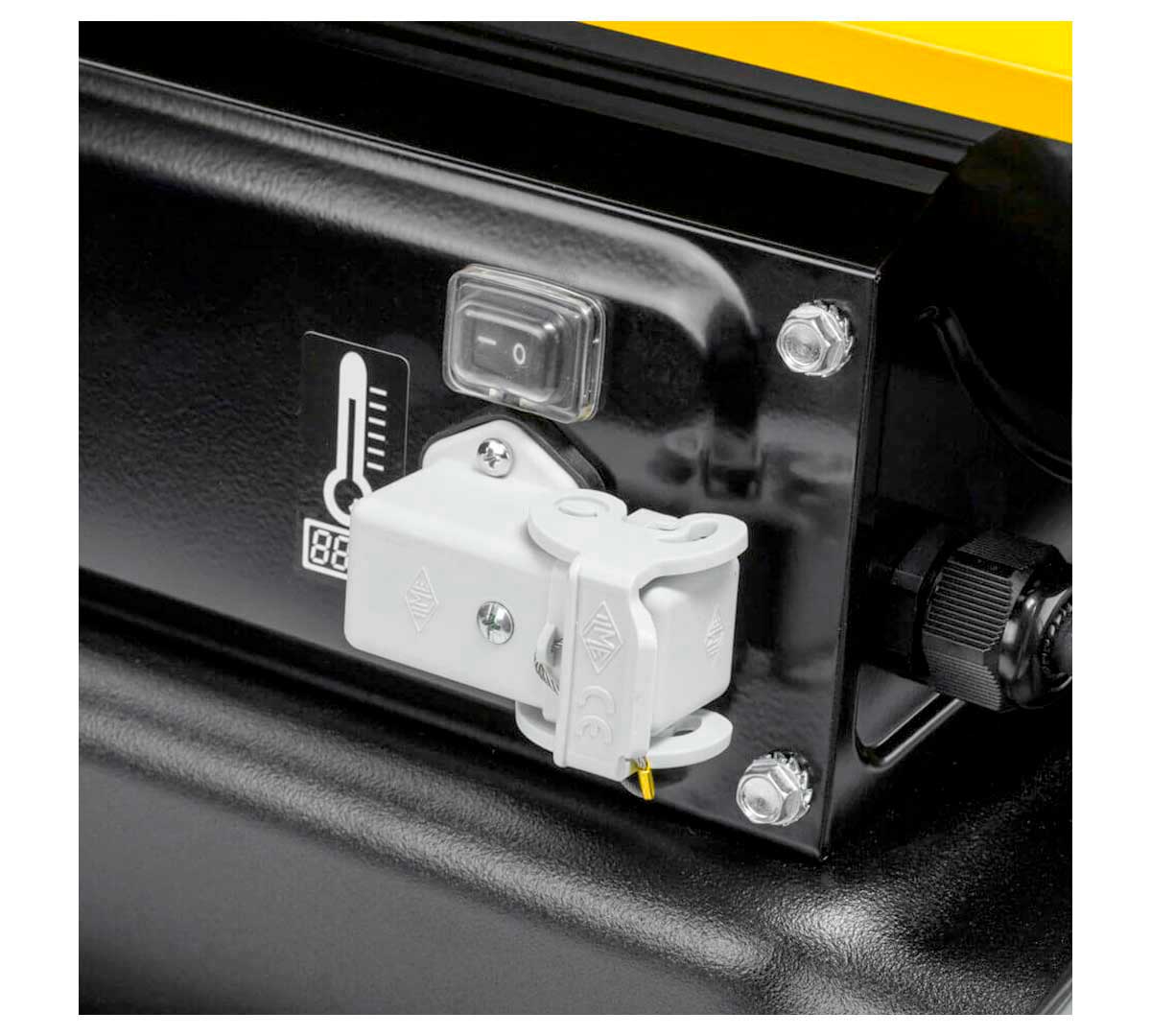 El Master Calentador Aire B 150 incorpora un termostato digital que permite subir y bajar la temperatura fácilmente, garantizando un control preciso durante su uso con gasóleo.