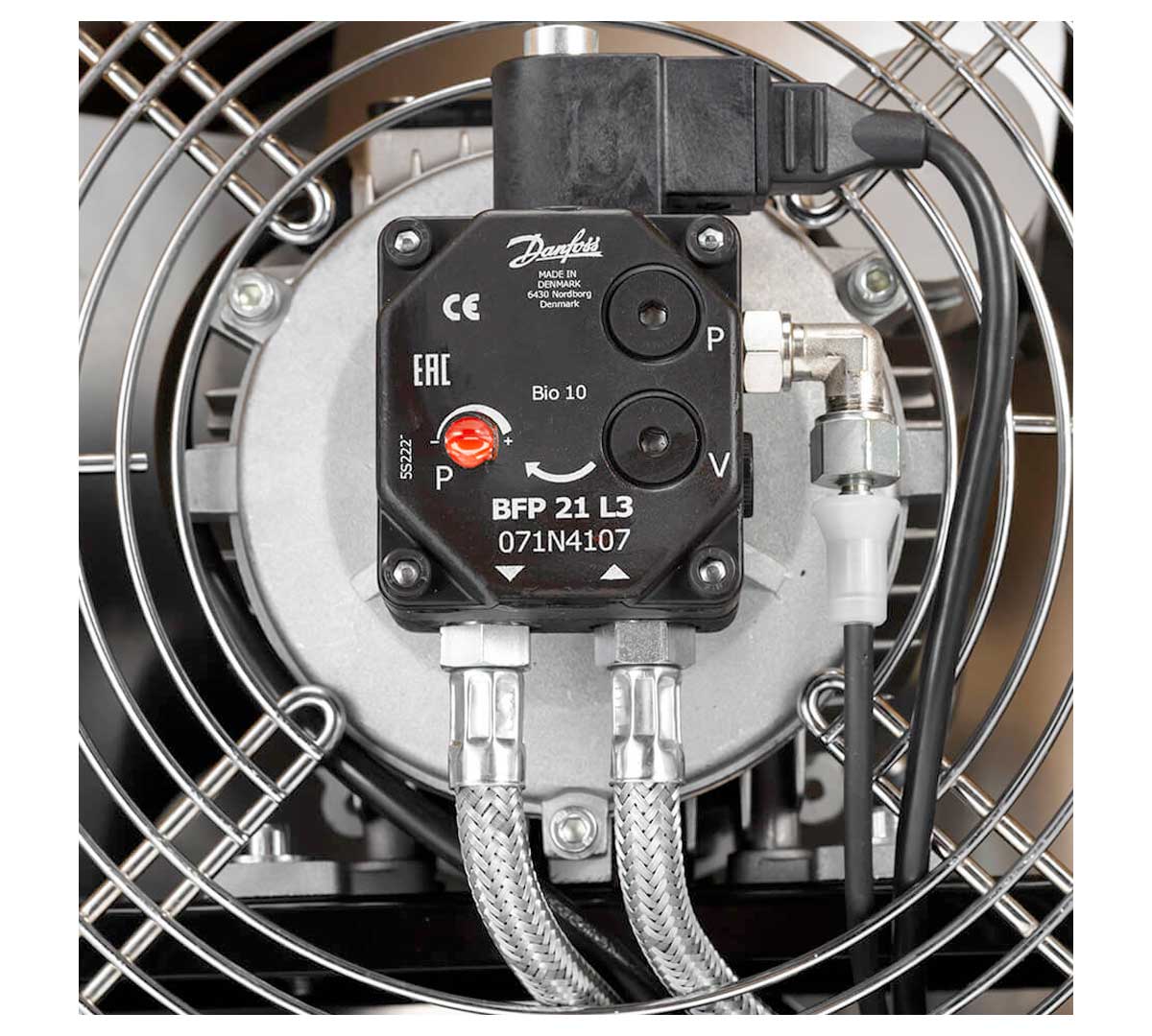 Incluye tres filtros (bomba, aspiración y entrada) que garantizan una combustión limpia y estable, reduciendo averías y asegurando una mayor duración del equipo. Además, el filtro de aspiración es transparente para facilitar la revisión rápida sin desmontar.