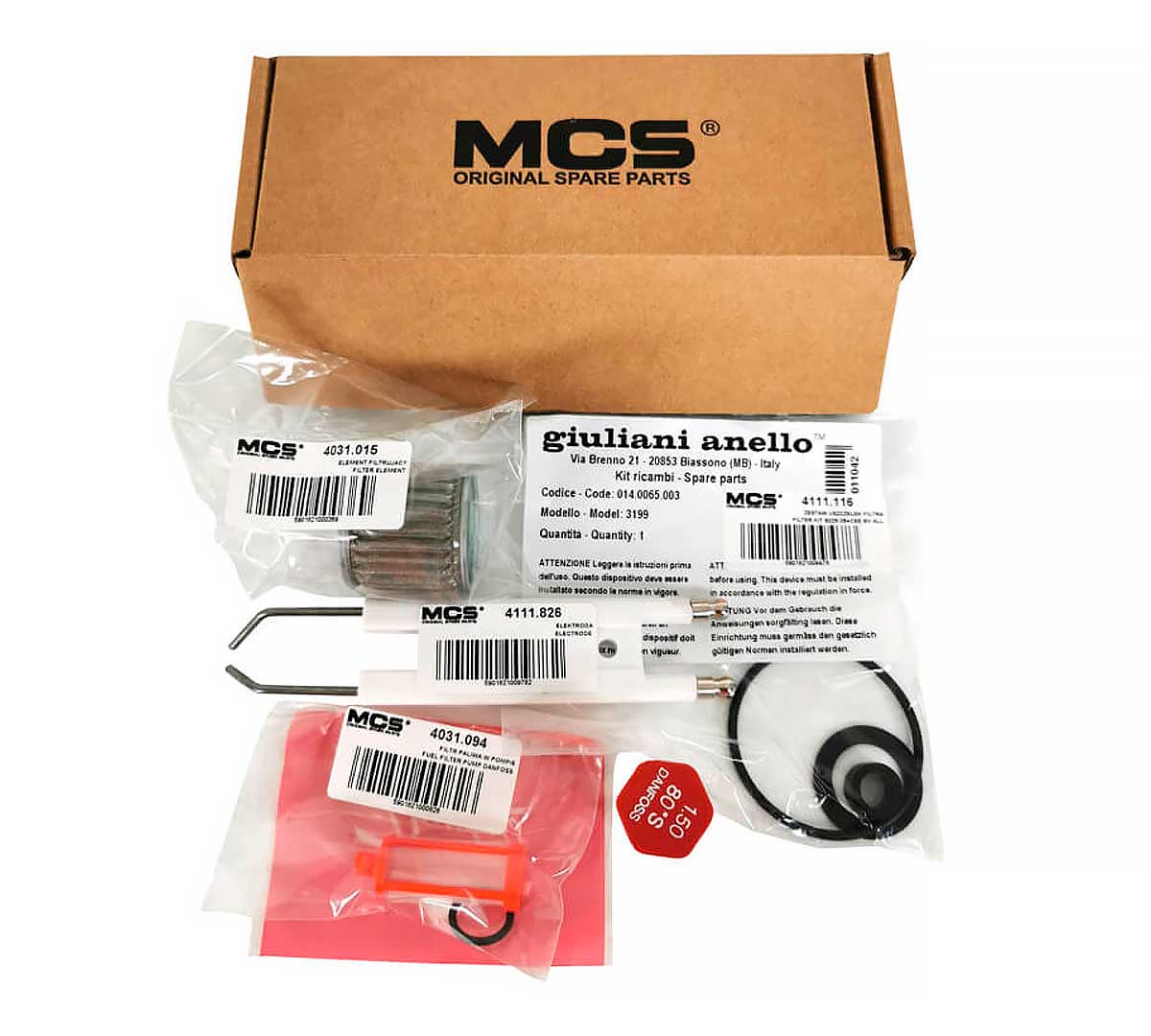 Incluye tres filtros de gasóleo y la válvula de seguridad interna debe ser cambiada cada 2100 horas o cada tres años, según indica el fabricante. Esto garantiza un mantenimiento eficiente y seguro del equipo.