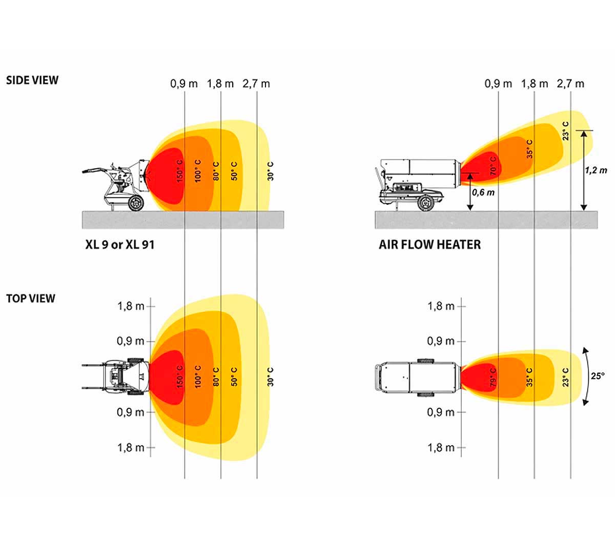 El Generador de calor por Radiación XL 91 Master es una solución eficiente y avanzada para aportar calor homogéneo y uniforme en espacios que requieren calefacción puntual, descongelación o secado.