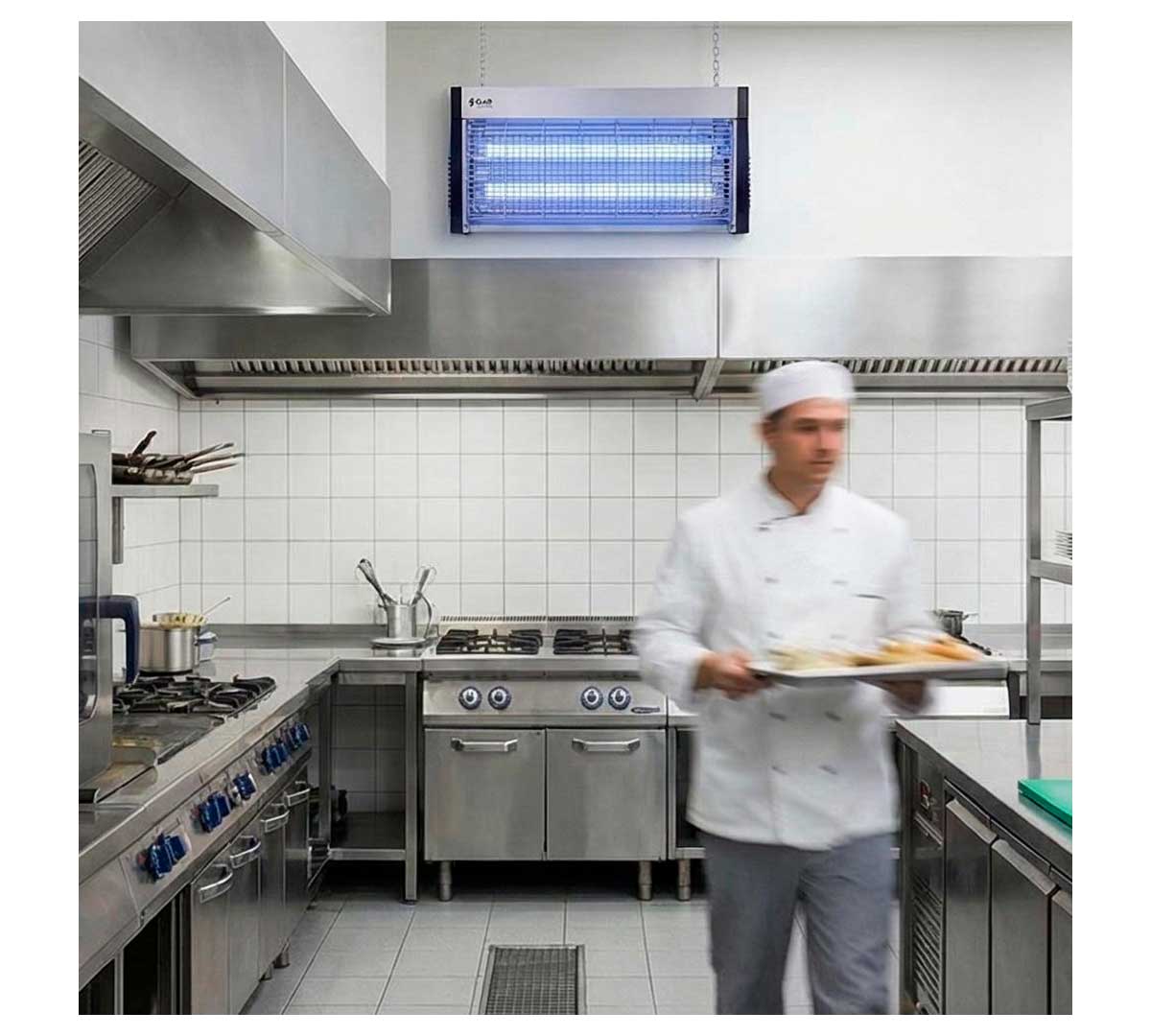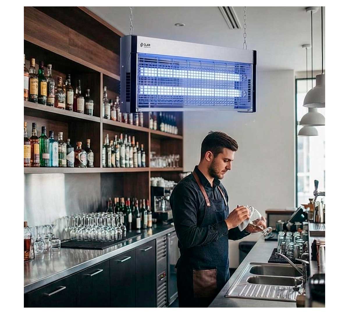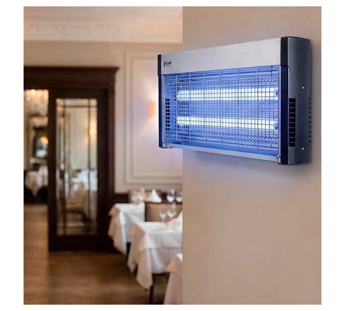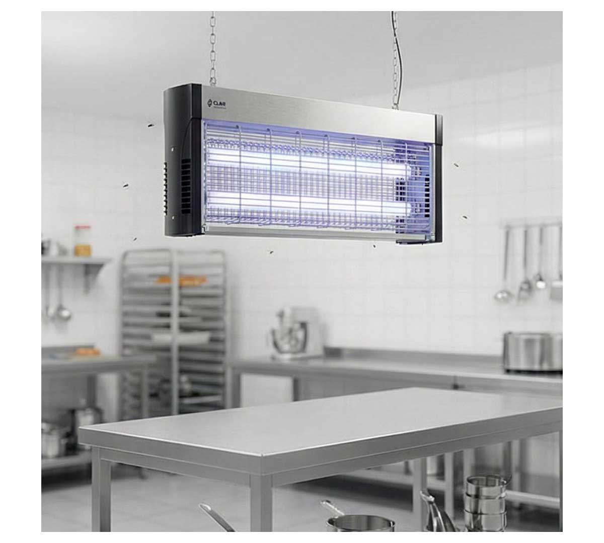 El Eliminador de Insectos Eléctrico PEAM40XP de Clar Systems está fabricado en acero inoxidable. Para uso exclusivo en interiores. Diseñado para instalación suspendida o de sobremesa.