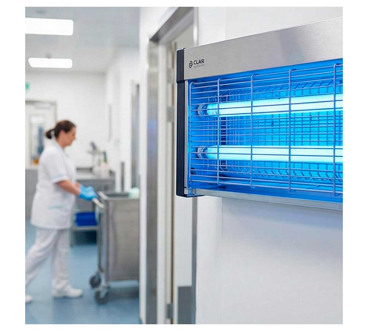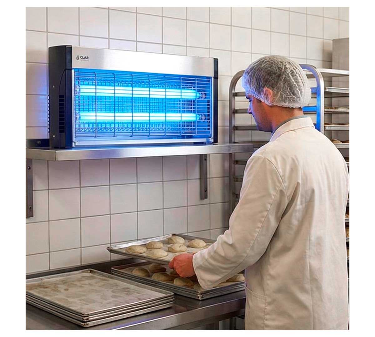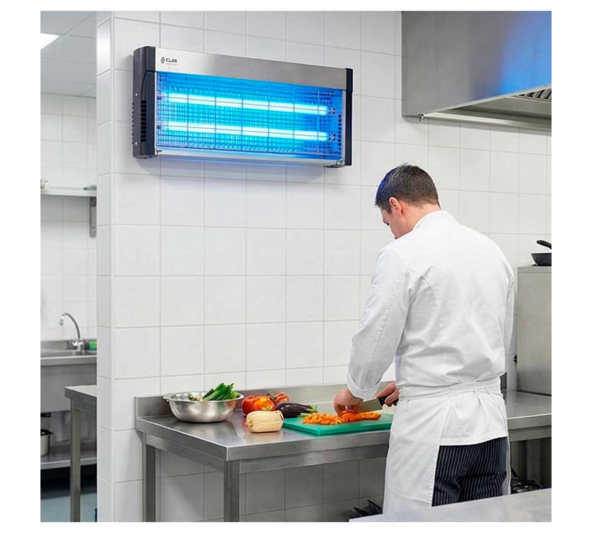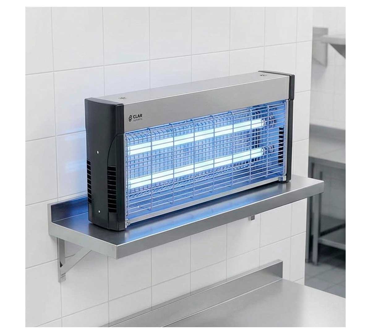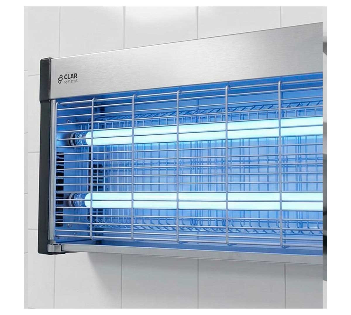 El Eliminador de Insectos Eléctrico PEAM80XP de Clar Systems está fabricado en acero inoxidable. Para uso exclusivo en interiores. Diseñado para instalación suspendida o de sobremesa.