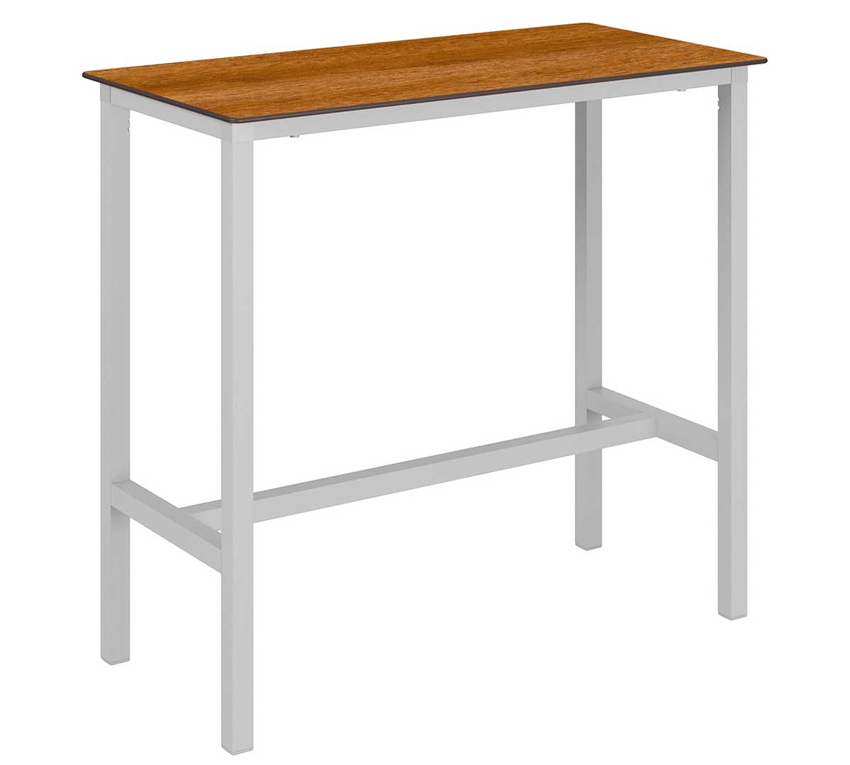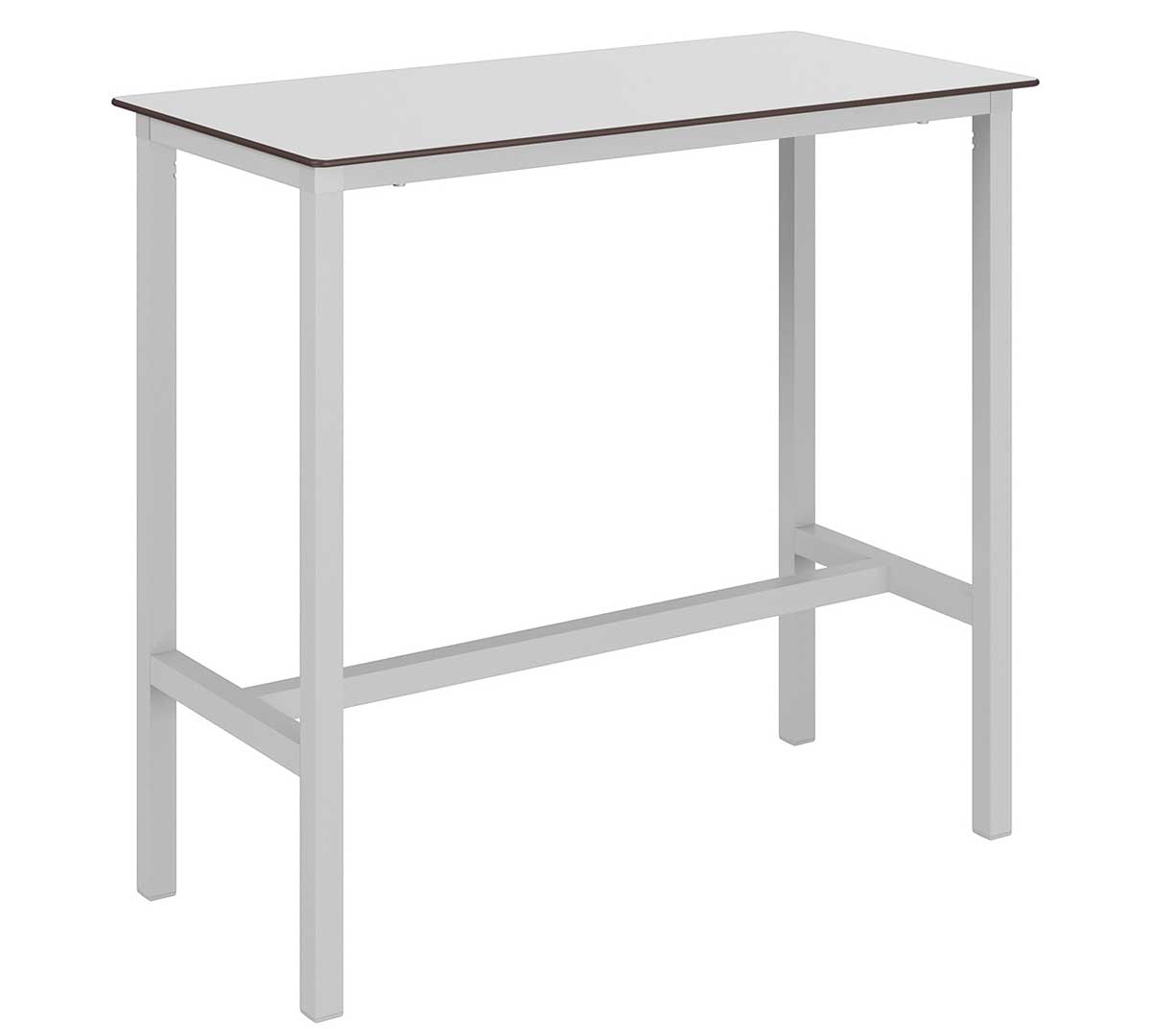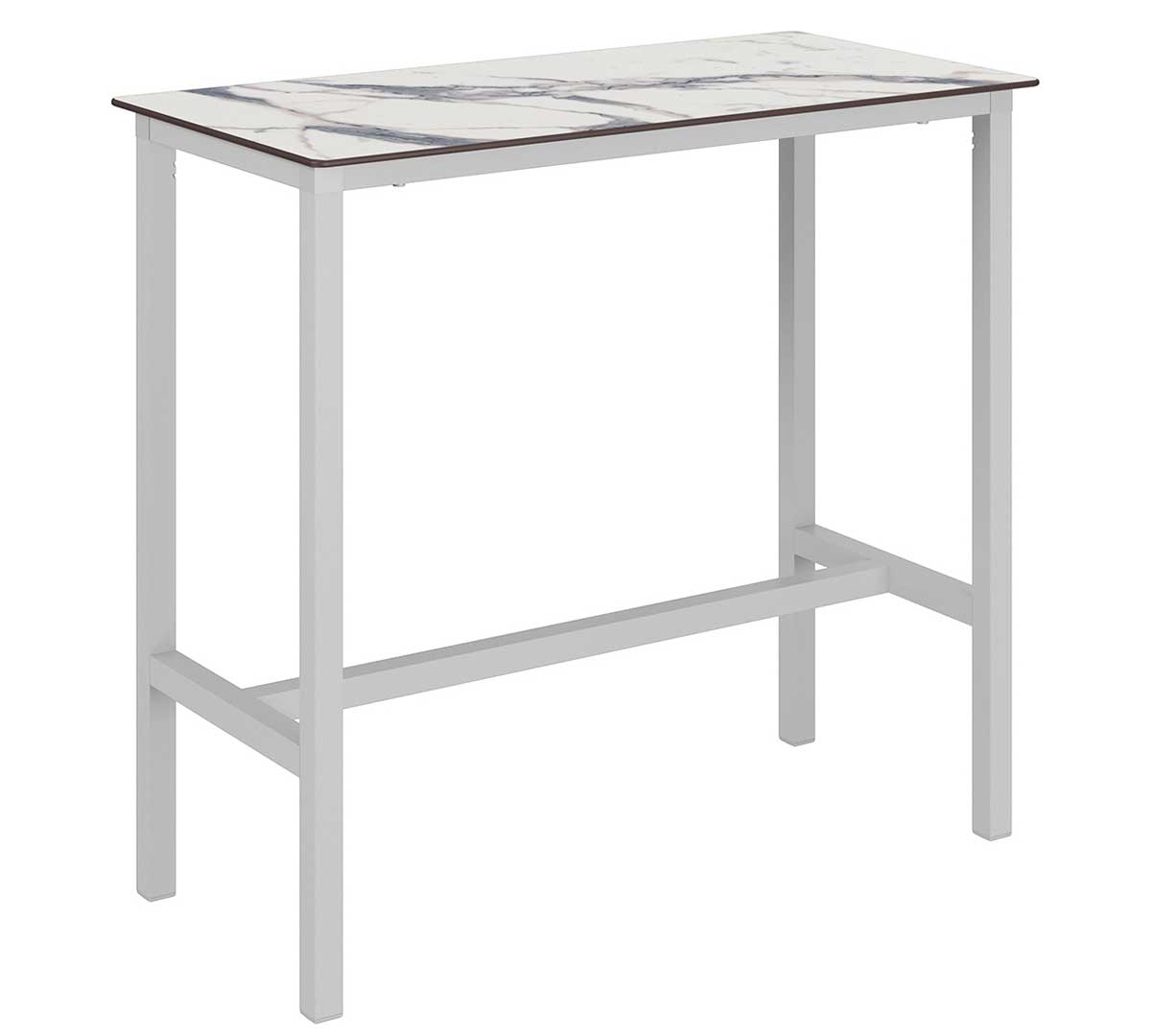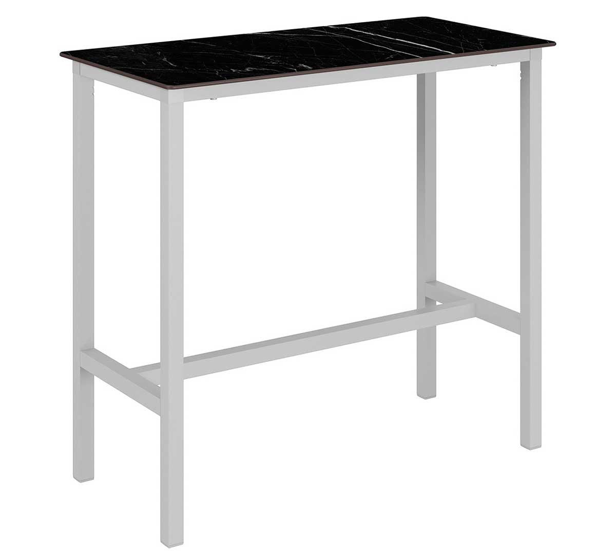 Mesa alta rectangular apta para su uso en interiores y exteriores. La estructura es de aluminio lacado en color blanco. El tablero es compacto de alta densidad. Los colores del tablero antracita y mármol negro se recomiendan utilizarlos en zonas con sombra. Es compatible con el taburete Attic de Ezpeleta.