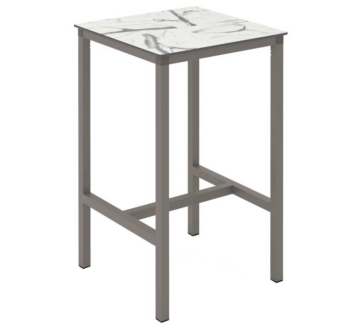 La Mesa Alta Cuadrada Urban Estructura Taupe de Ezpeleta es un modelo apto para interiores y exteriores. Está fabricada con estructura de aluminio lacado colore taupe, con uniones de poliamida.