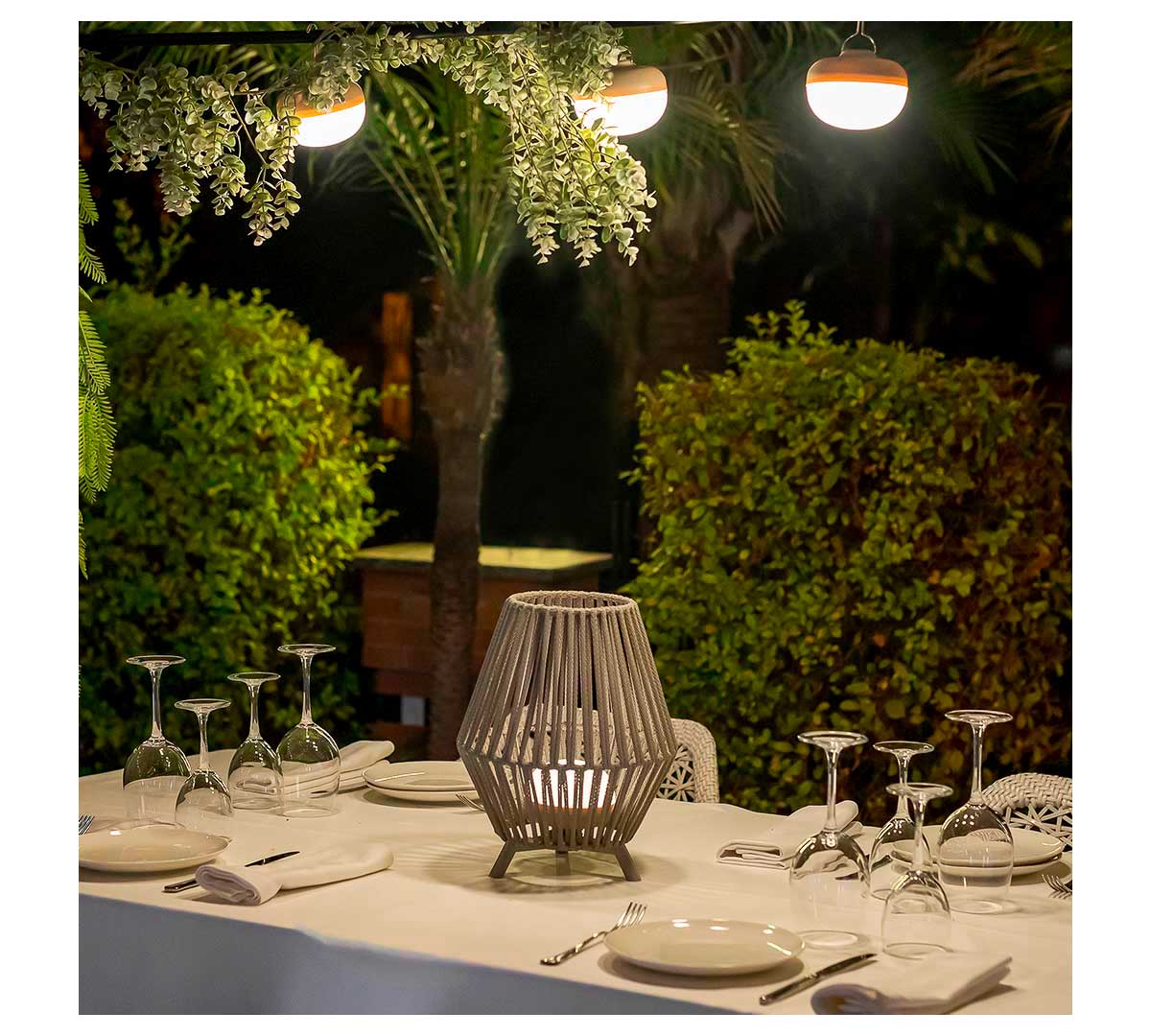 Esta lámpara de sobremesa es perfecta para terrazas, jardines, zonas chill out, salones y comedores, así como para cualquier espacio donde se requiera una fuente de luz portátil, elegante y de bajo consumo. Su diseño robusto y la protección IP54 la hacen especialmente indicada para ambientes exteriores protegidos o semicubiertos.