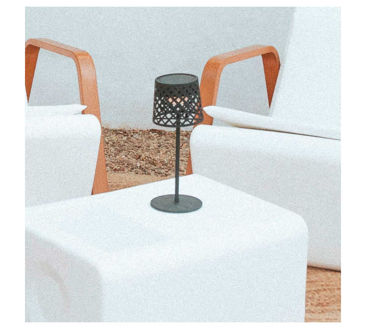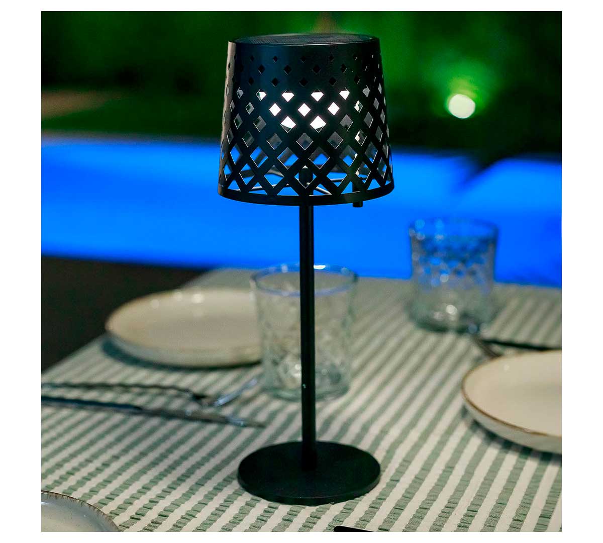 La lámpara solar de mesa Gretita aporta luz cálida, confort visual y libertad de colocación, mejorando la experiencia del comensal y la imagen del espacio sin instalaciones ni consumo eléctrico continuo.