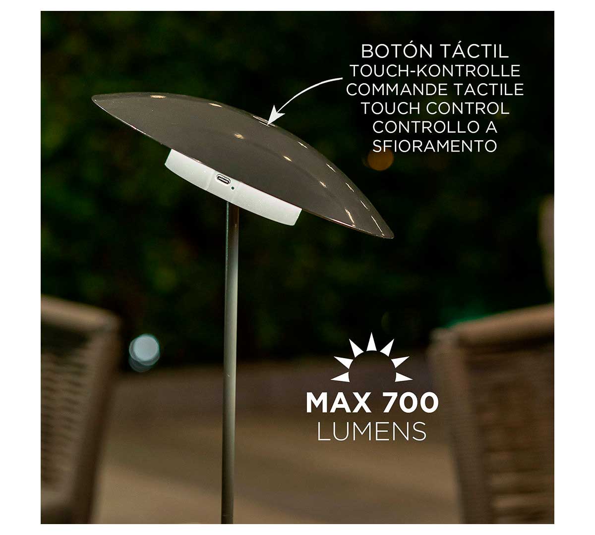 Uso Exterior e Interior. Batería Recargable. Luz Cálida