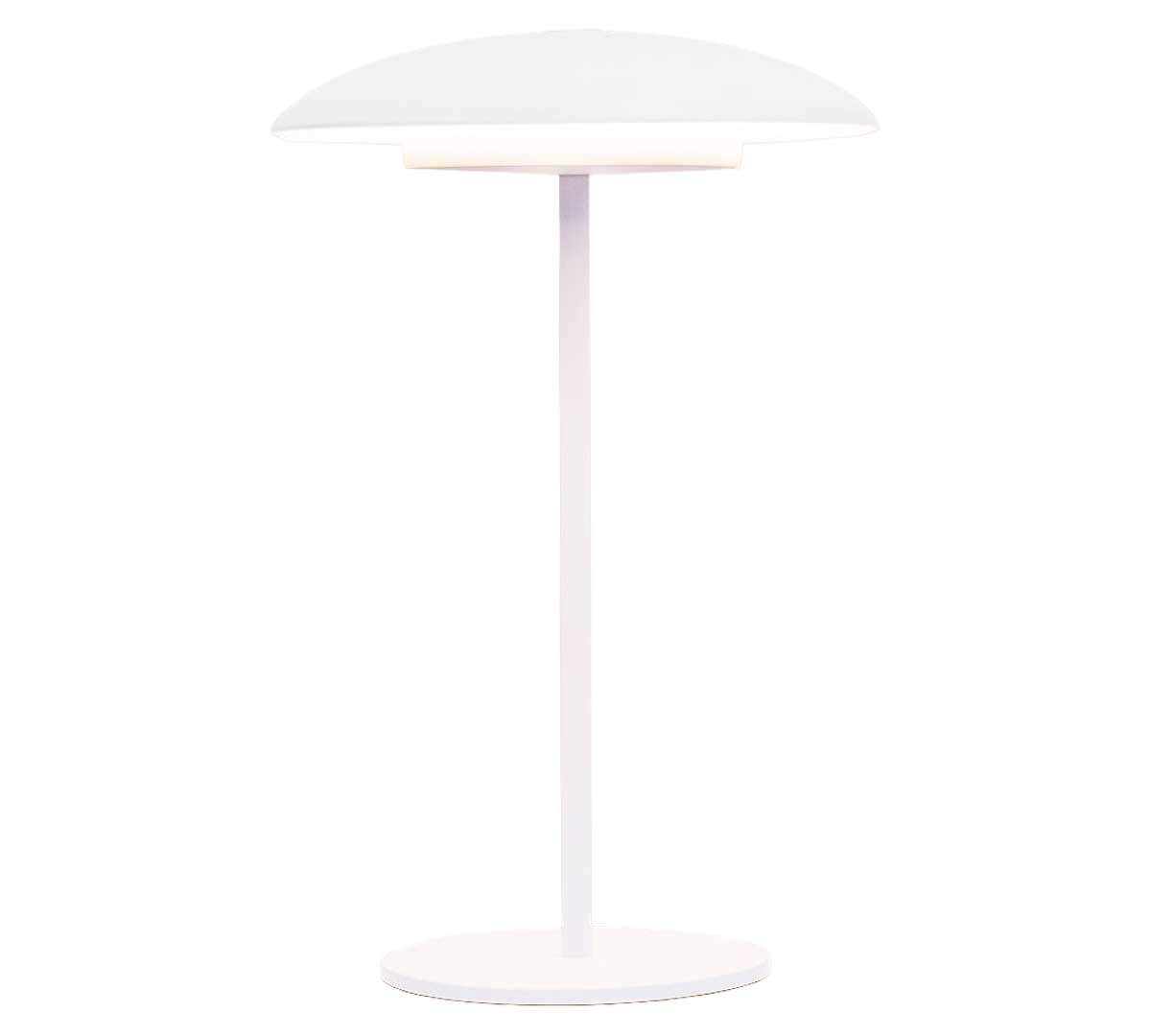 Lámpara de sobremesa de hierro pintado en color Blanco o Antracita. Recargable por USB-C, con iluminación LED regulable, luz cálida y protección IP44 para uso interior y exterior. Incluye mando a distancia. Disponible en modelos Sardinia 30 y Sardinia 40. Cargador no incluido.