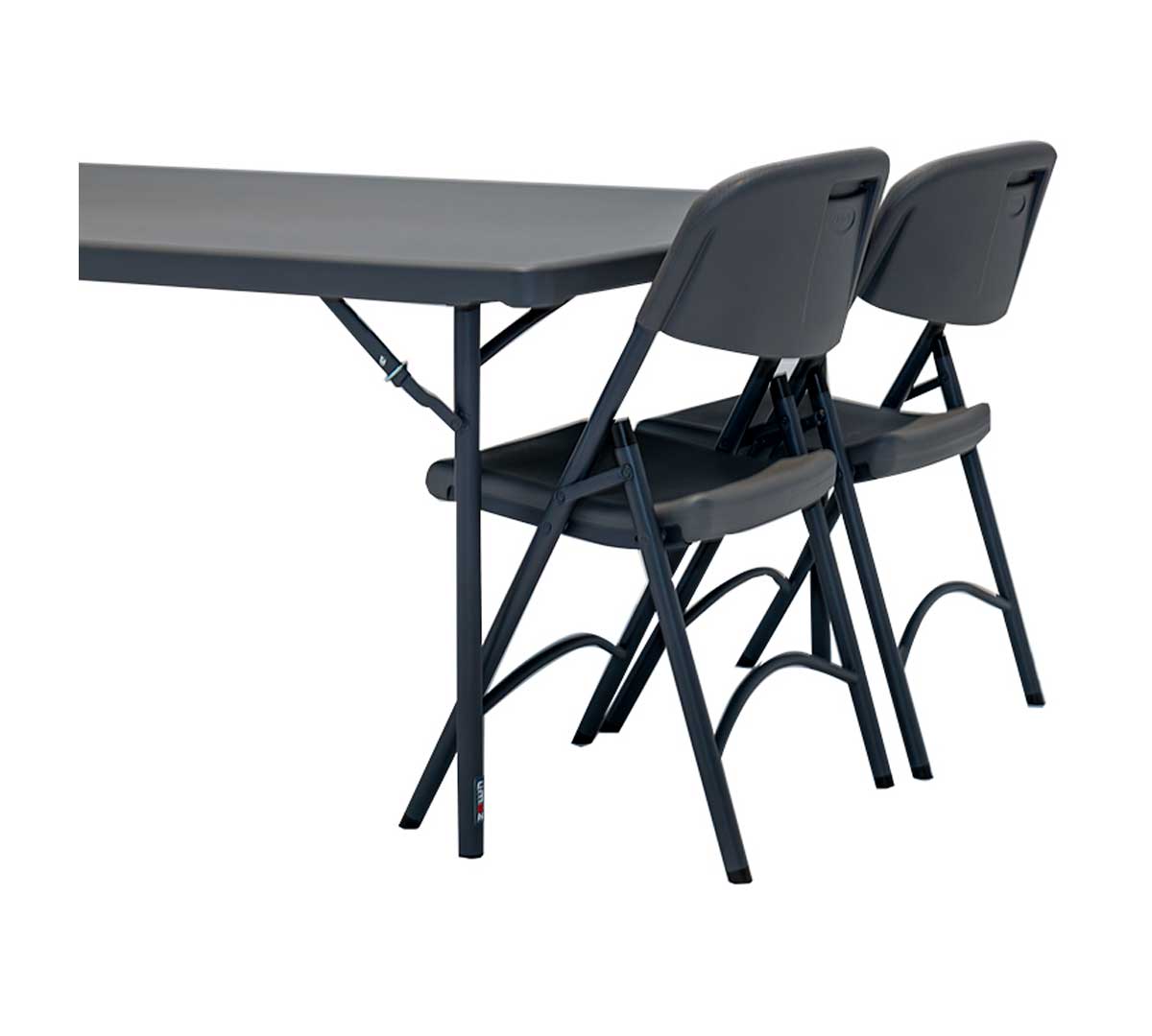 La mesa Imperial200 forma parte de la gama New Zown Classic de color gris oscuro azulado, que destaca por su durabilidad y confort. Es una mesa plegable profesional para eventos con tablero de gran profundidad, estructura reforzada y sistema de unión longitudinal y transversal para composiciones modulares.